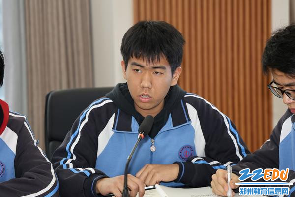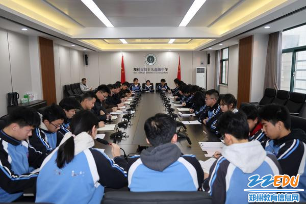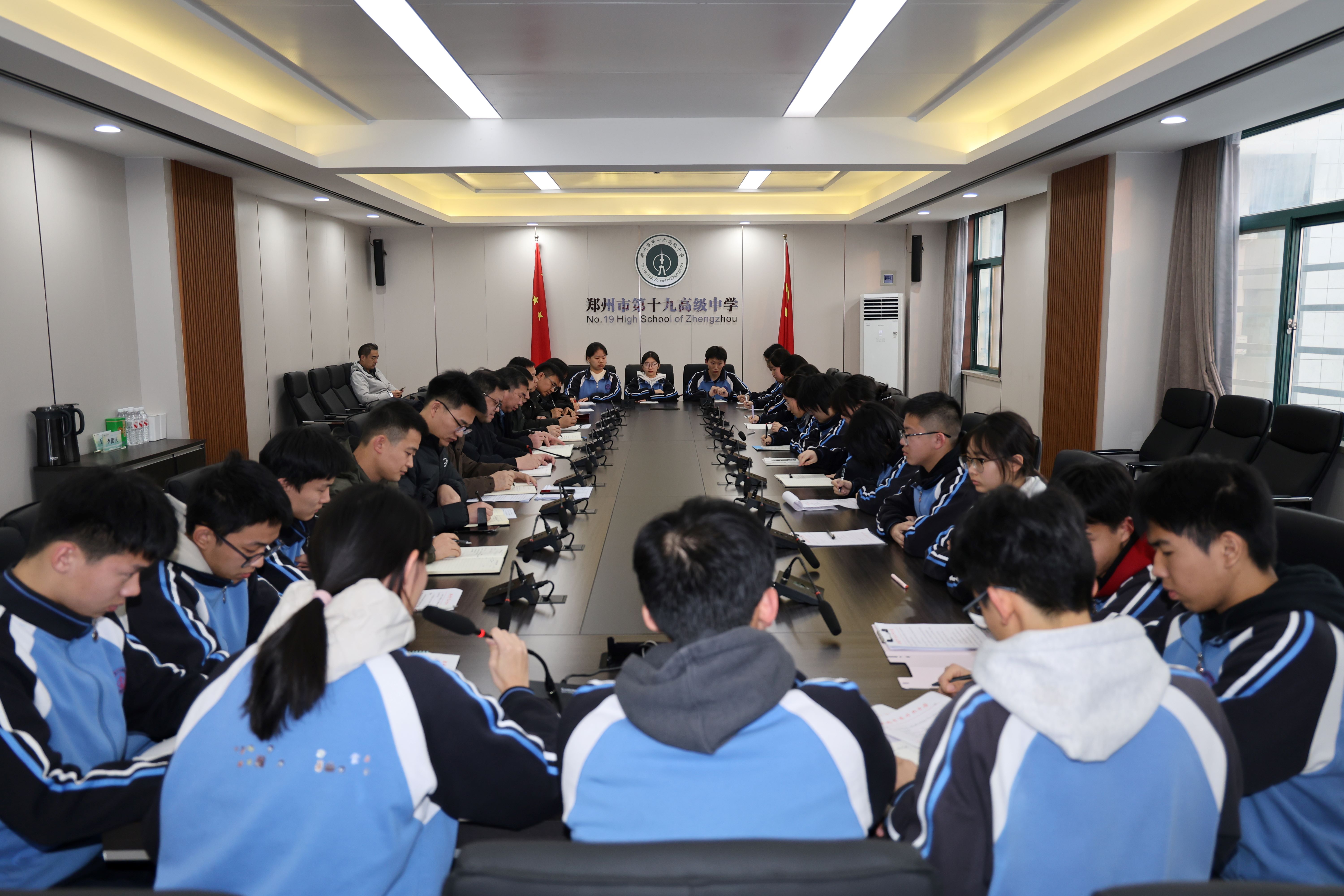 副校长王帆对学生代表们的积极表现深感欣慰。他以郑州市第十九高级中学“大学长”的身份勉励大家爱校、荣校,怀着对母校的深厚情感,勇于发现问题、表达心声。同时,他也坦诚分享了自己关心的话题,与学生干部们推心置腹,展开讨论。