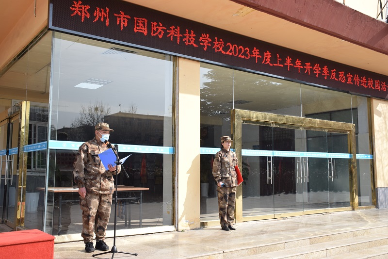 郑州市国防科技学校利用升国旗仪式开展反恐宣传教育进校园活动启动仪式