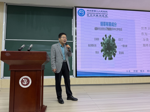 为深入贯彻落实立德树人根本任务,切实加强学生思想道德建设与身心健康教育,引导广大青少年树立正确的生命观、健康观,筑牢生命安全防线,3月26日,郑州市第十四高级中学特邀郑州市第二人民医院呼吸与危重症医学科主任医师吴景硕走进校园,为该校高一学生开展了以“拒绝烟酒 远离毒品”为主题的健康教育讲座。