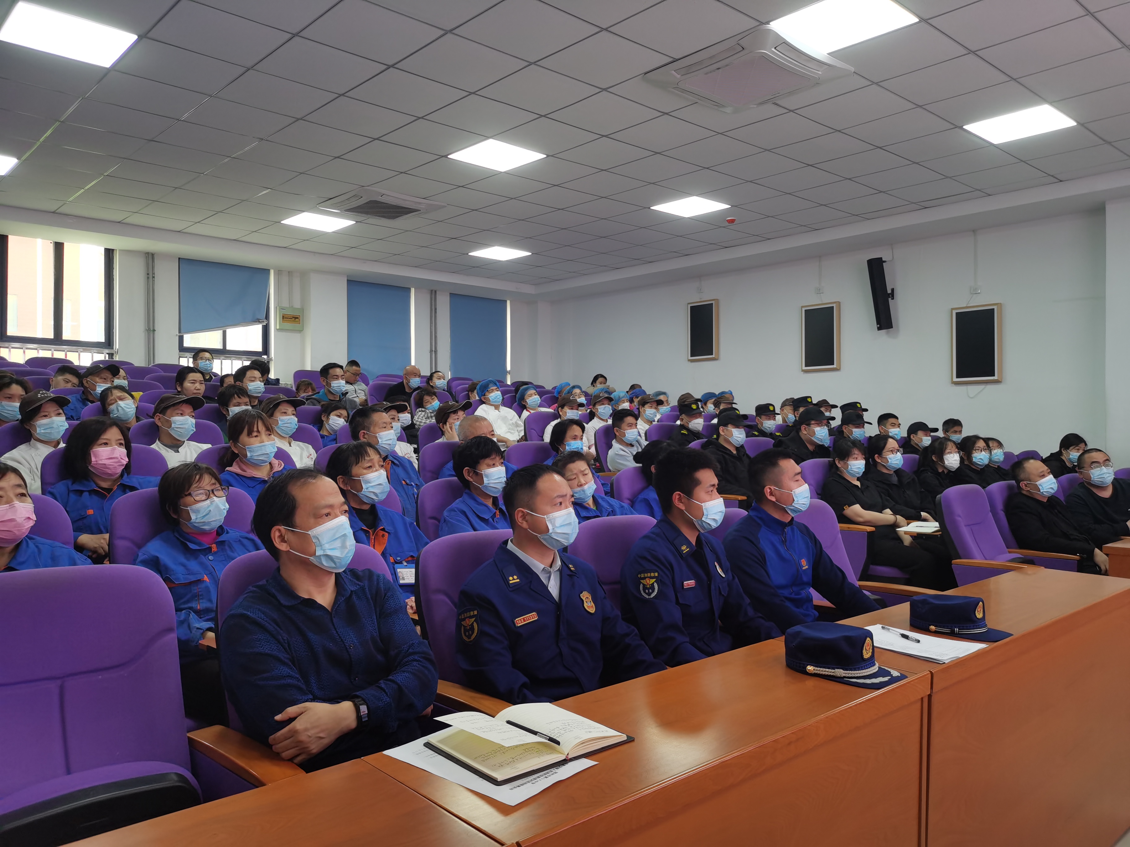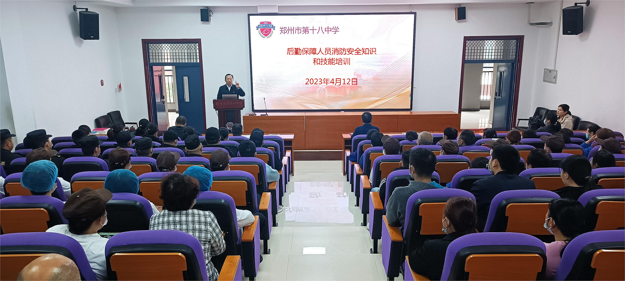 为进一步加强郑州18中后勤消防安全管理,增强后勤人员消防安全责任意识,提高预防校园火灾事故的应急处置能力,4月12日上午,郑州18中在阶梯教室(一)为后勤保障人员进行了消防安全知识培训。负责后勤保障的总务处工作人员、餐厅人员、宿舍教官、物业保洁及校园保安人员共计108余人参加培训。郑州市二七区消防救援大队队长刘宇,消防员李沛隆、窦龙、吕朝阳、窦继安为此次培训授课和实操演练指导。