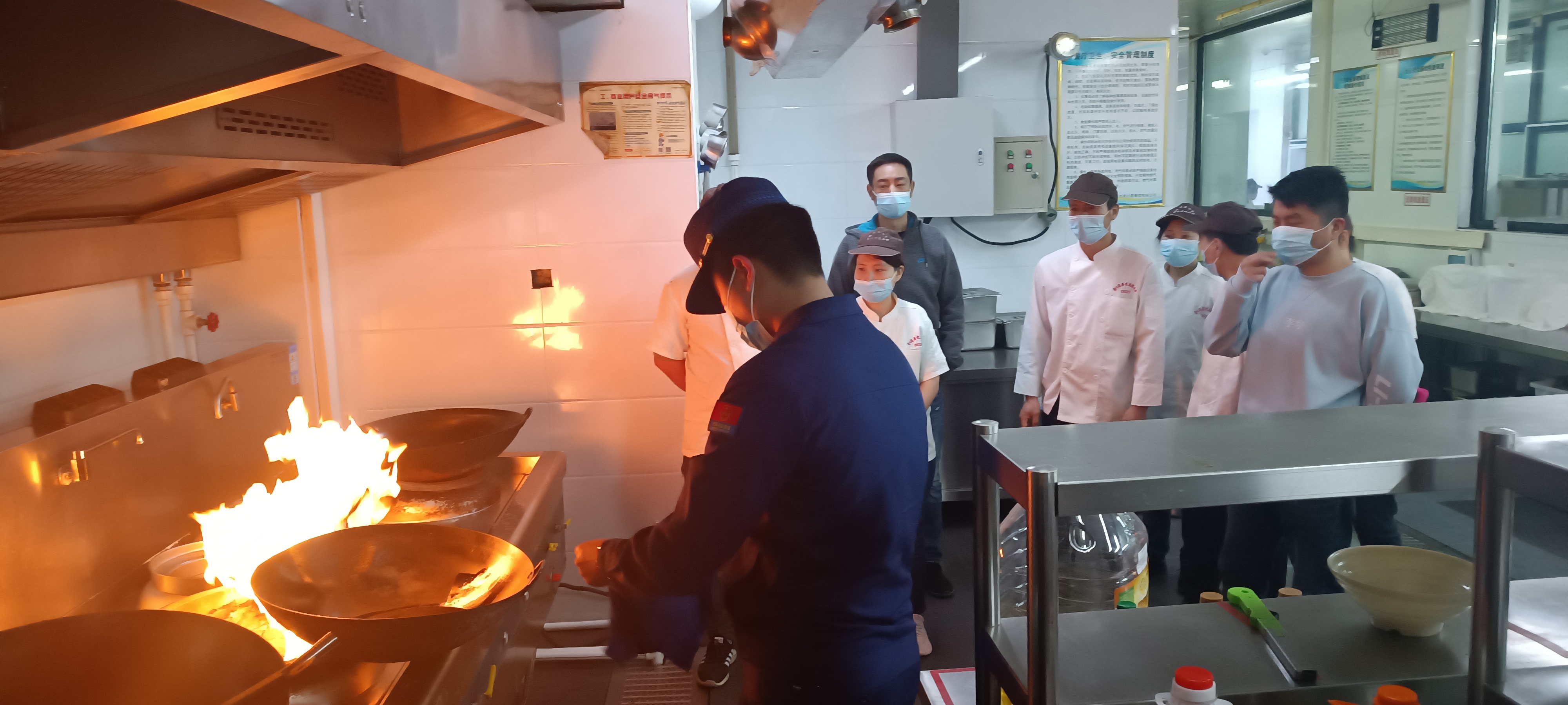 模拟演练餐厅后厨灶台起火如何正确使用灭火毯