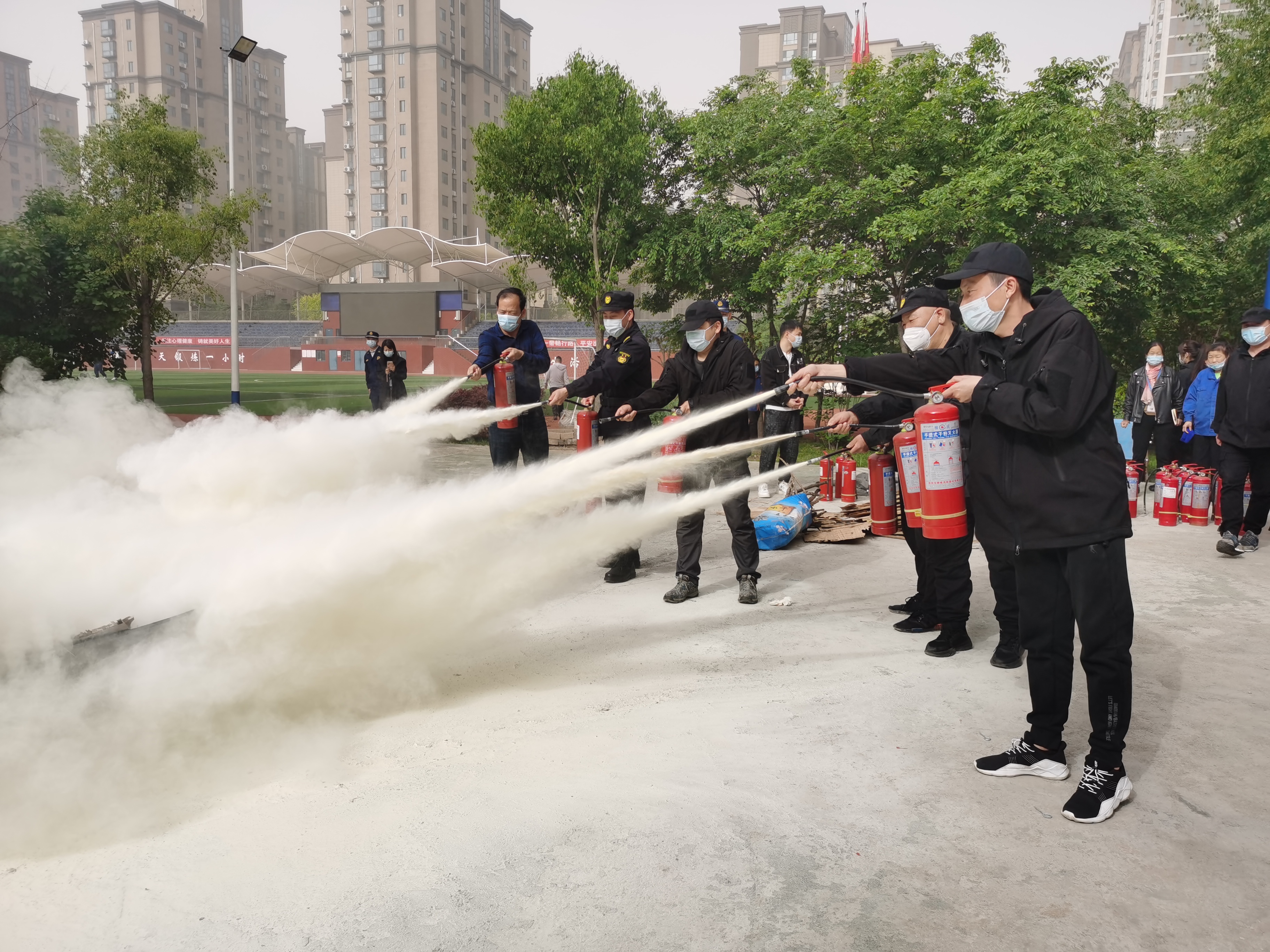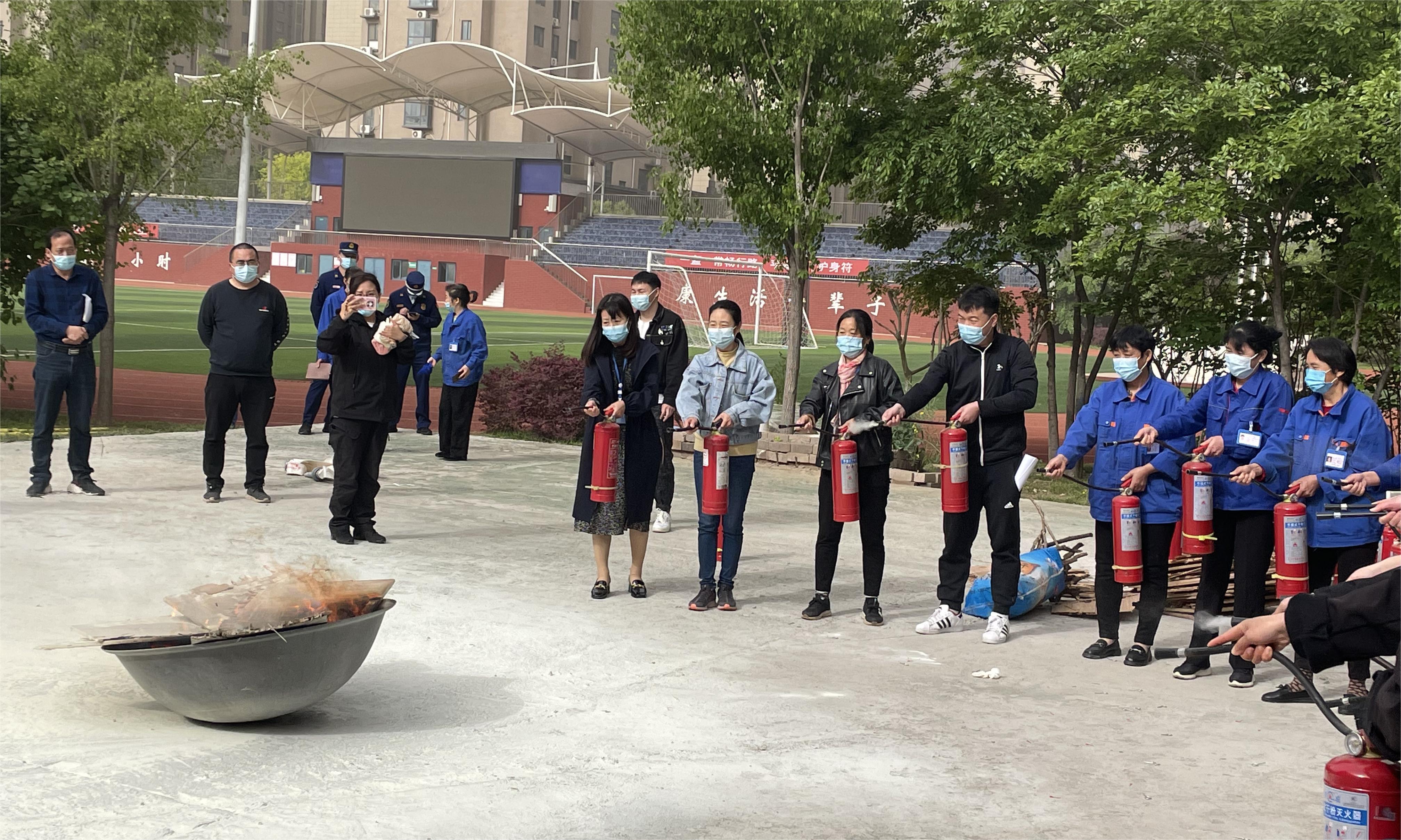 郑州18中总务处、政教处人员和物业人员同组实操演练正确使用灭火器