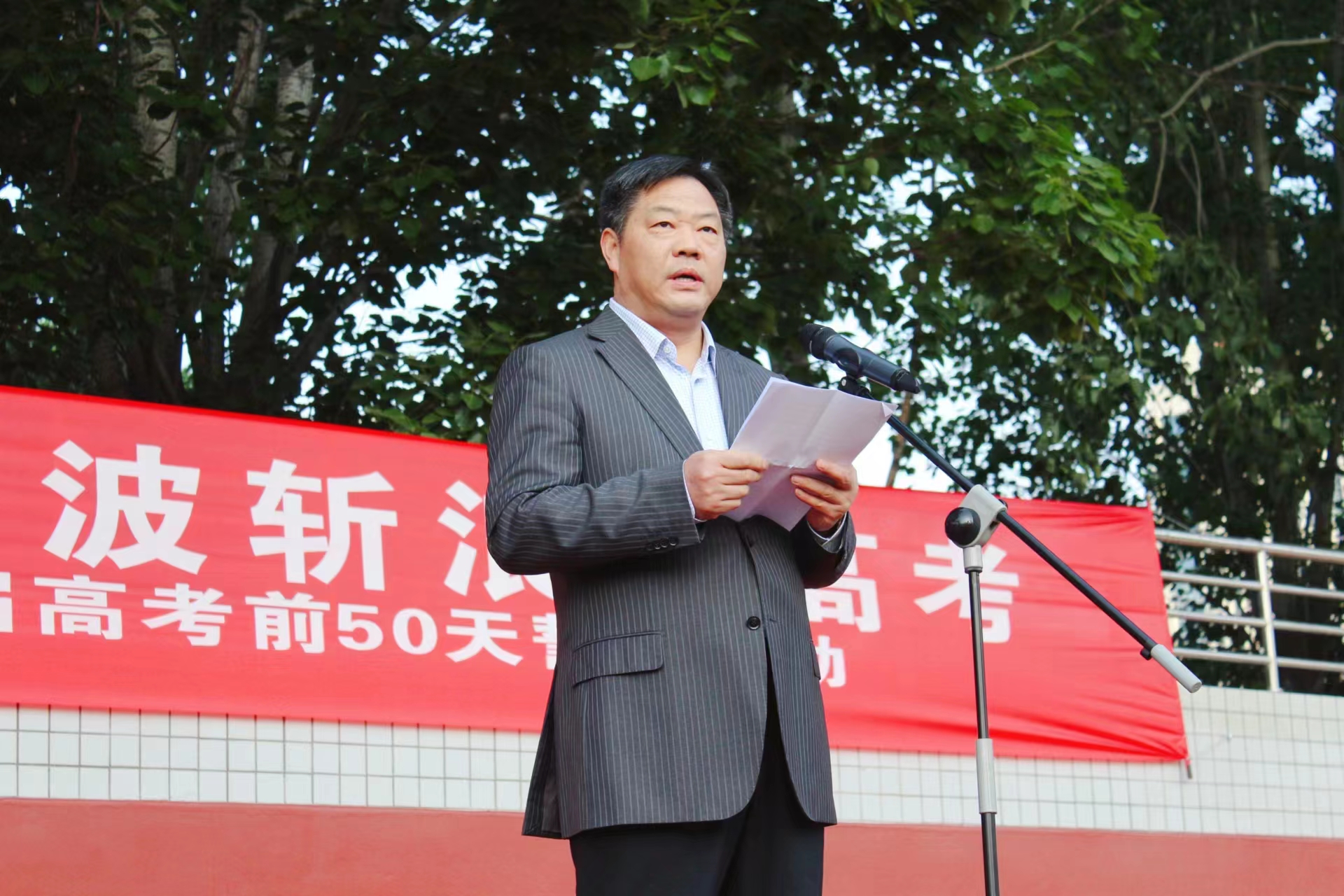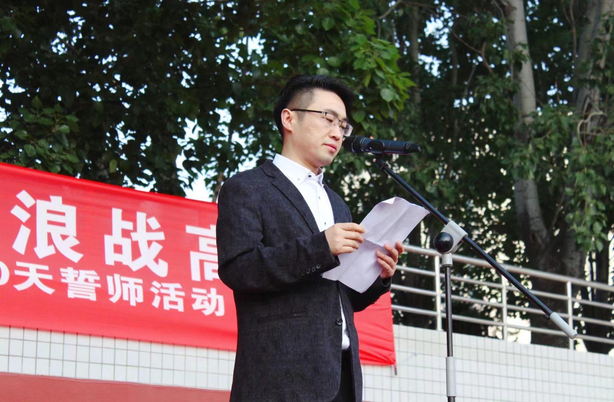在雄壮的国歌声中,活动正式开始。本次活动由高三10班王来姊同学主持,首先由高三年级长陈东林老师发言,陈东林老师在发言中重温三年来与同学们朝夕相处的酸甜苦辣和难忘记忆,向学子们表达了老师的谆谆教导与承诺。希望同学们在备考冲刺期坚定信心、志存高远、勇于拼搏、注重方法,用新时代新青年的责任和担当引领自己未来方向,用毅力和坚持实现自己的梦想。