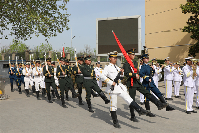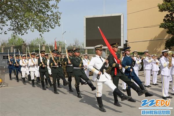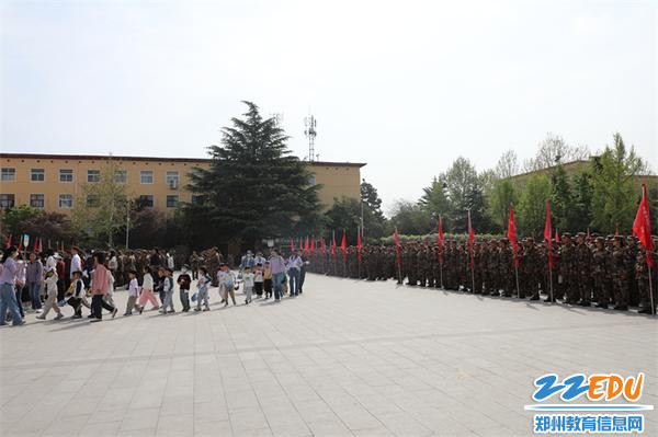 到达郑州市国防科技学校,和哥哥姐姐一起观看升旗仪式