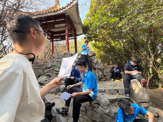 祭扫仪式结束后,各班学生在教师的引领下分散在公园的草木之间,开启沉浸式自然探索。大家细心观察春日草木的生长姿态,认真搜集不同的树叶与花朵,一边记录树种、花卉的形态特征,一边将搜集的树叶小心夹入笔记本,为后续标本制作做好准备。回到校园,同学们伏案书写研学心得,将清明祭英烈的感动、自然探索的乐趣与本次活动的所思所悟凝于笔端,让这次研学活动成为一次深刻的成长体验。
