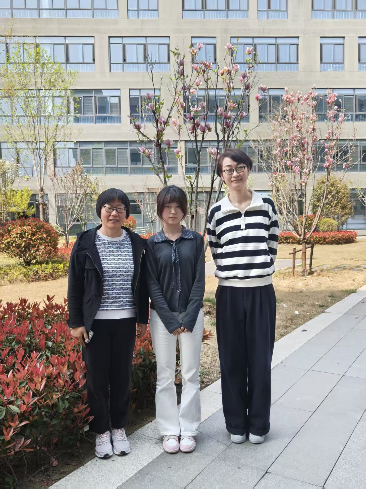 辅导老师金雪远、张艳虹与周凌西同学合影