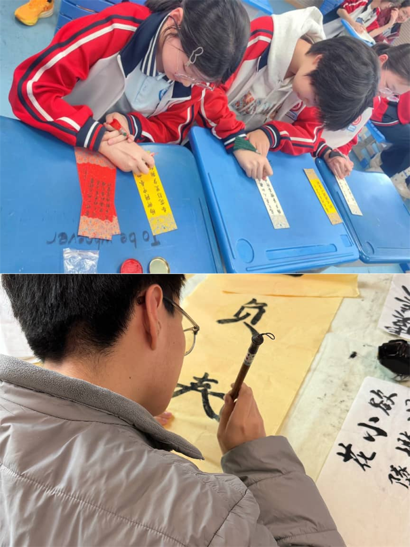 此次活动围绕“春”与“诗”两大主题展开,分为“春景入诗”现场创作和“诗情画意”成果展示两个环节。在教师的引导下,学生们漫步校园,从绽放的花朵、拂面的微风、摇曳的绿意中捕捉灵感,引导同学们在观察、感受校园盎然春色的同时,进行文学创作与表达。当诗词的古典意境与校园明媚的春景交织碰撞,激发了同学们的无限文思。在“春景入诗”现场创作环节,同学们挥毫泼墨将眼前的烂漫春花与拂面微风化为笔下的平平仄仄,字里行间流淌着对春天与生命的体悟。随后,在“诗情画意”环节大家将诗作绘制成主题书签、卡片以及书法作品,从而定格春日的诗意瞬间,让墨香与花香一同定格。