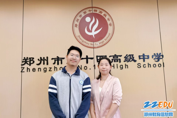 郑州市第十四高级中学学生刘建濠和教师蒋艳萍合影