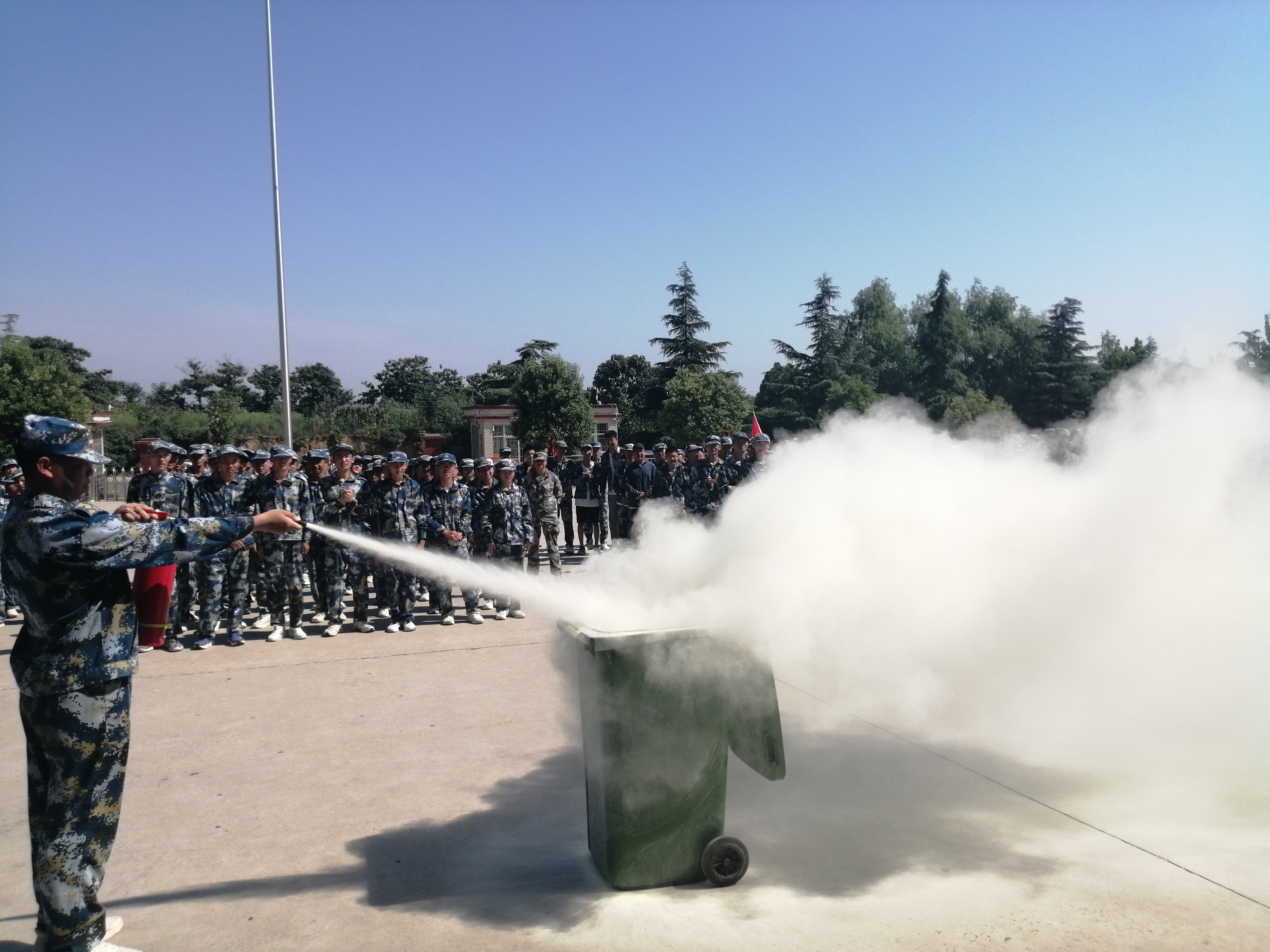 8月15日上午,郑州18中组织开展消防疏散演练活动。李鹏祥教官给同学们作解消防安全知识的讲座,他向同学们介绍了干粉灭火器的使用方法,并让学生动手演示干粉灭火器的规范使用方法。讲座结束,同学们在教官的组织下,按照虚拟火灾现场场景,开展疏散演习,大家在宿舍听到演练警报声,按照弯腰低头捂鼻的动作要领,有序疏散到训练场。