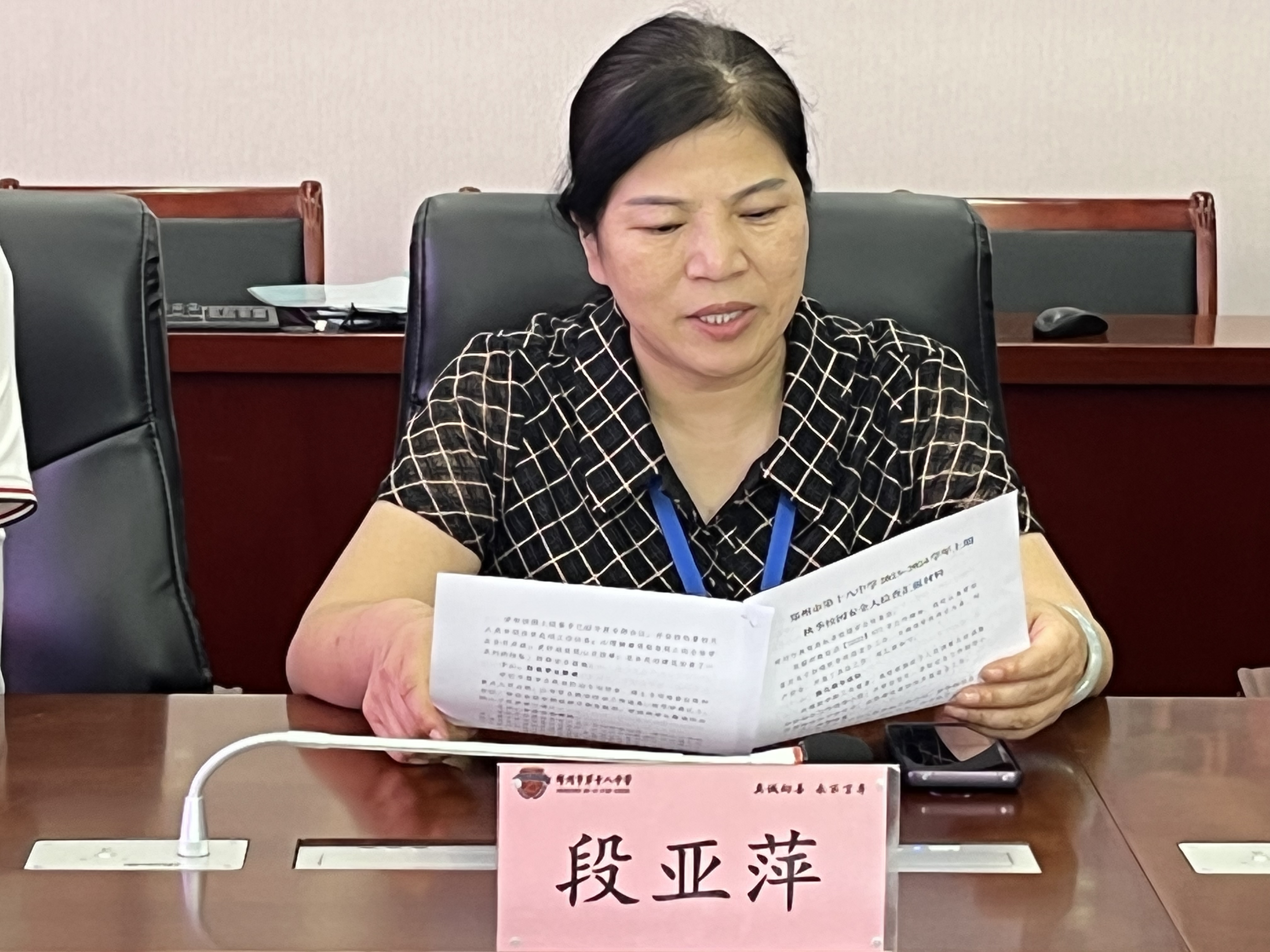 郑州18中党委书记段亚萍详细汇报学校在安全方面采取的措施
