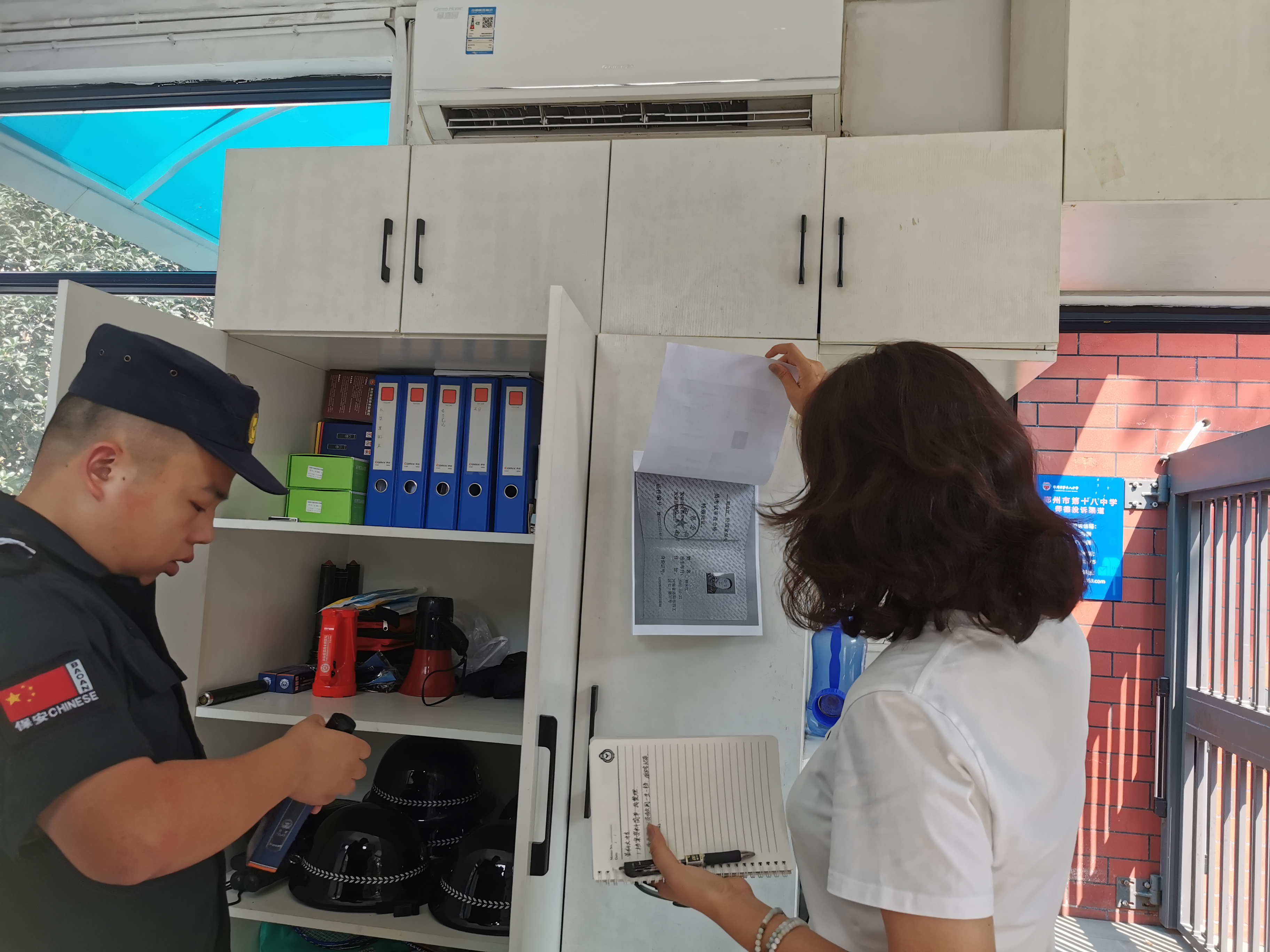 段亚萍根据检查细则,详细汇报学校在安全方面采取的措施。随后,检查组还通过实地察看、查阅档案资料等方式,对学校开学准备、防溺水、防范学生欺凌、消防安全、交通安全、食品卫生、校舍安全、危化品管理等13项工作进行督查。检查组认真查阅了相关档案资料,全程严格对照细则标准,详细地实地考察隐患位置,对学校安全工作给予好评。