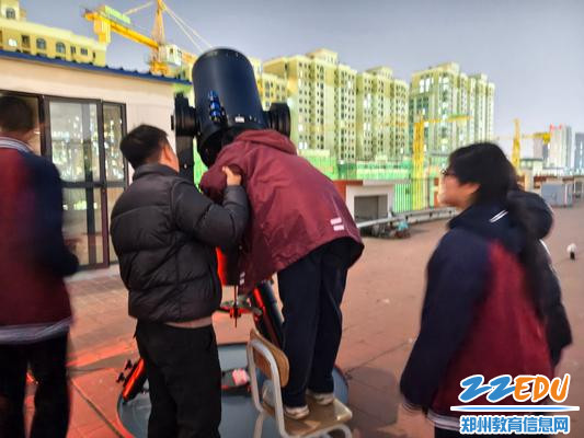 郑州市第十八中学地理教师高雨引导学生进行天文观测