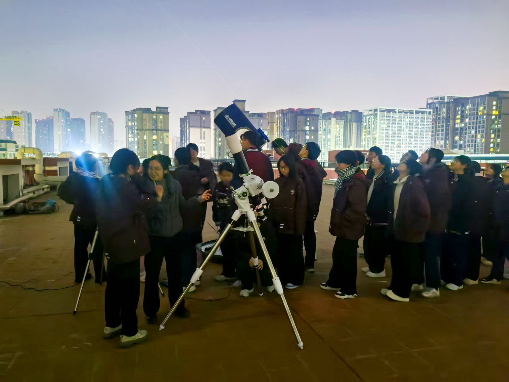 为引导学生走出课堂、探索宇宙奥秘,深化对地理学科中天体运动相关知识的理解,12月15日和12月16日晚上,郑州市第十八中学天文台内,一场天文观测实践活动顺利开展。本次活动由高二地理指导老师带队,高二年级所有选科地理的学生参与其中,在星空的指引下开启了探索宇宙的奇妙旅程。
