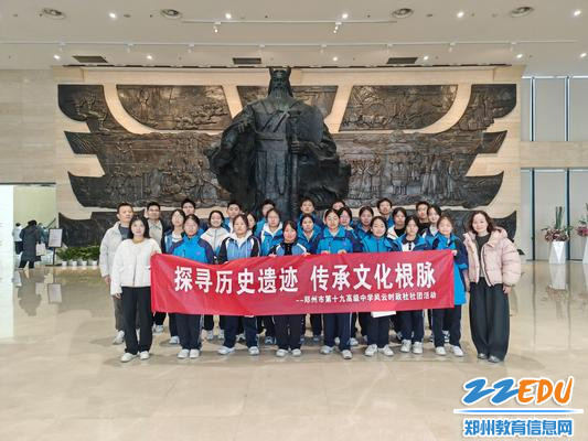 为深化思想政治教育与历史文化传承的融合,引导学生从考古实证中感悟中华文明的源远流长,郑州市第十九高级中学风云时政社团在高一政治组老师的带领下,赴郑州商都遗址博物院开展 “探寻商都密码・感悟文化自信” 主题研学活动,社团成员沉浸式领略了3600 年前商代都城的辉煌文明。