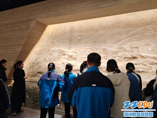 郑州商都遗址博物院展厅面积约5500平方米,基本陈列“巍巍亳都 王都典范——郑州商代都城文明展”,分为文明摇篮、玄鸟生商、巍巍商都、大邑商都、四方之极、生生不息、守望保护七个单元。从出土的青铜礼器、玉器、陶器到商代都城布局沙盘、宫殿复原模型,一件件文物、一幅幅图景生动再现了商代早期的社会风貌、礼仪制度与工艺水平。在镇馆之宝 “杜岭方鼎” 前,讲解员详细介绍了其铸造工艺与历史价值,同学们驻足凝视,惊叹于先民的智慧与创造力,纷纷就文物背后的历史背景、考古发现等问题与老师、讲解员展开热烈讨论。
