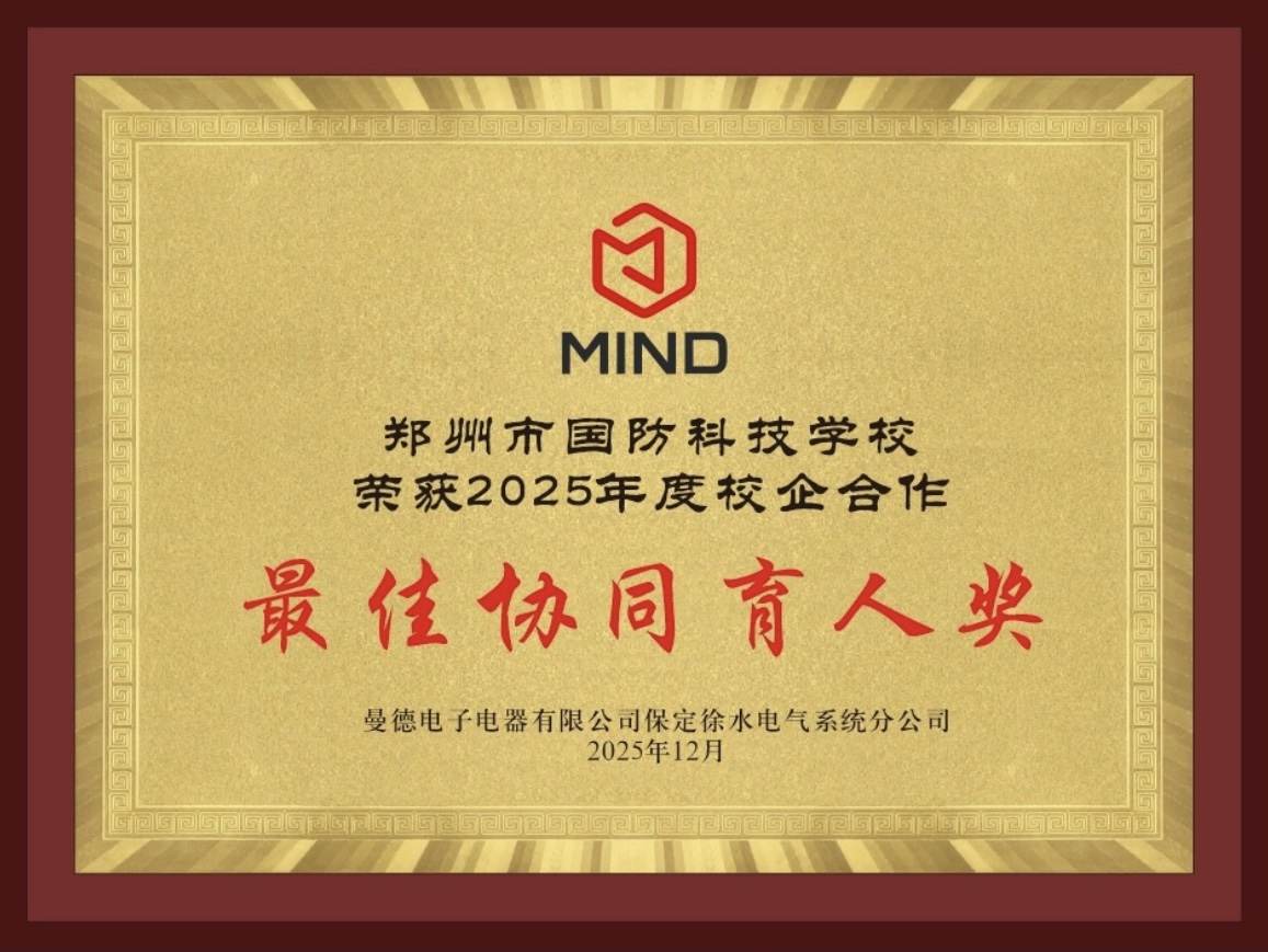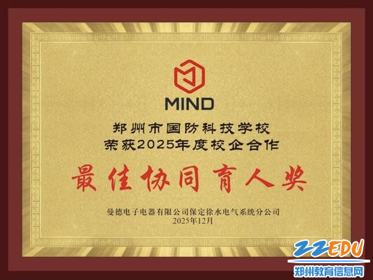 2025年12月18日,曼德电子电器有限公司保定徐水电气系统分公司传来喜讯,郑州市国科技学校凭借在产教融合、协同育人领域的突出成效,被授予“最佳协同育人奖”荣誉称号,这一奖项是企业对学校人才培养质量与校企合作成果的高度认可。