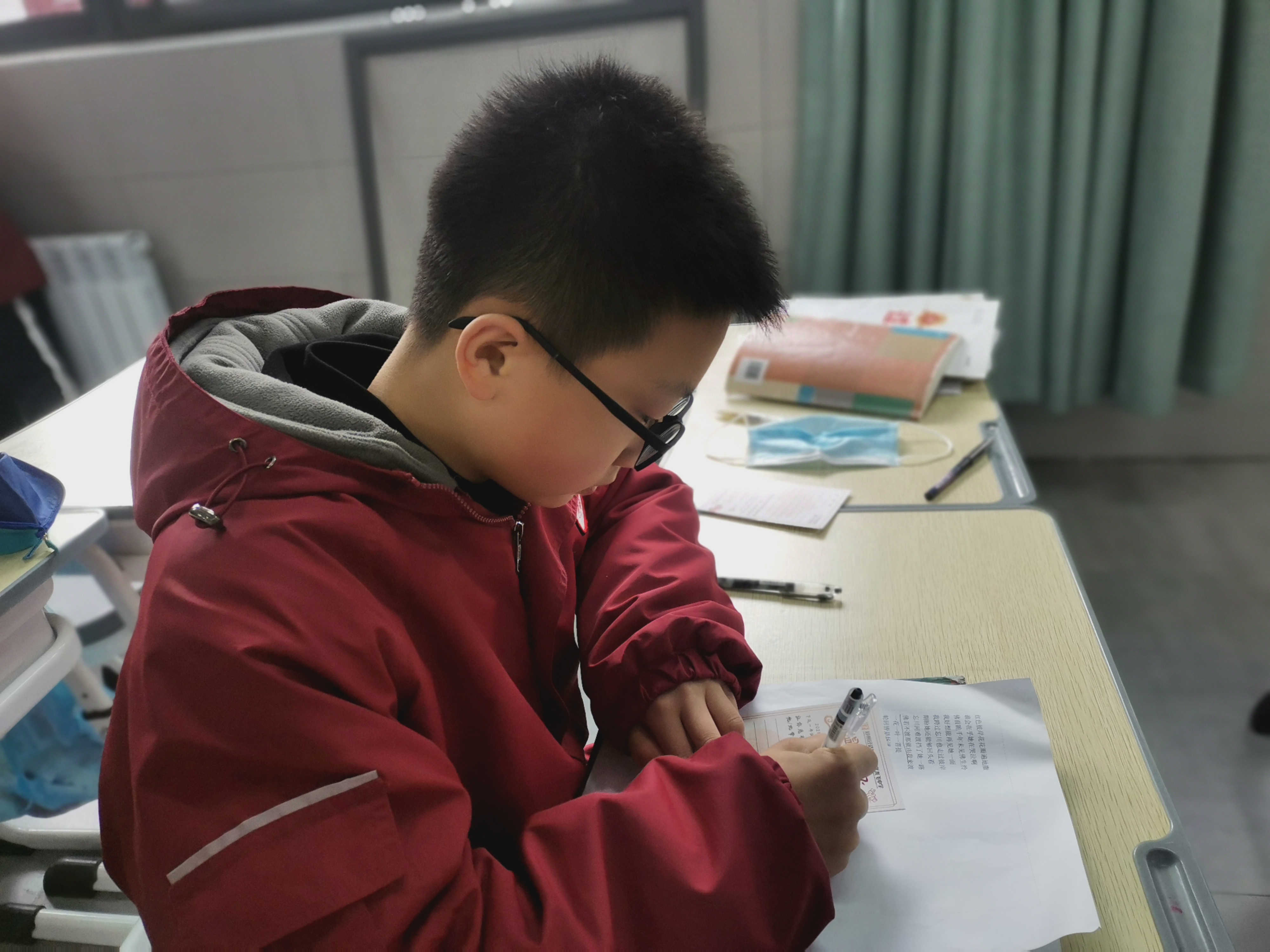 学生填写感恩贺卡