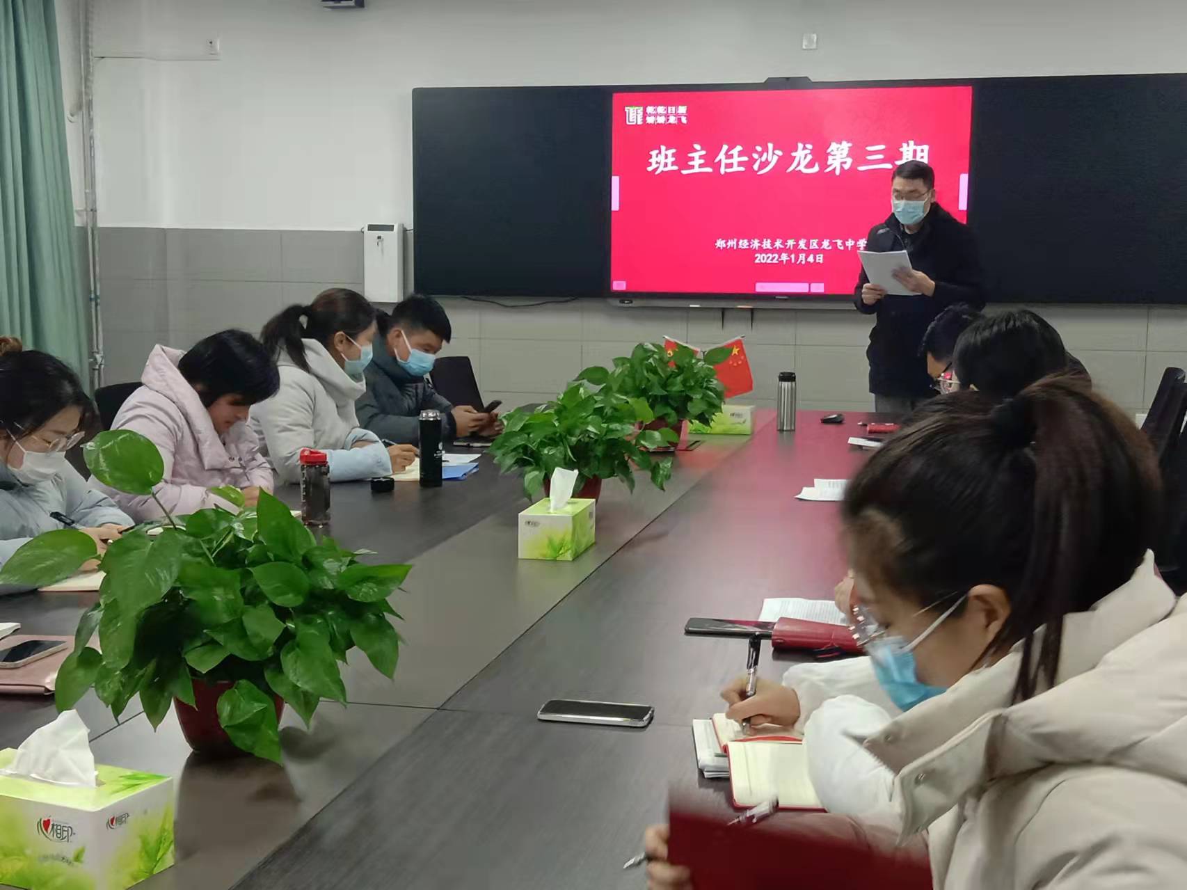 为推动学校班级管理工作的高效开展,增进班主任之间的交流与学习,郑州经开区龙飞中学于2022年1月4日下午举行第三期班主任沙龙活动。此次活动由政教处主任许冬冬主持,参与本次活动的有副校长赵聪莉及各班正副班主任。