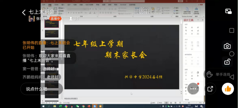 最后,各班分班级召开了线上家长会,进行了假期安全教育和假期生活指南讲解,学生和家长一起参加了会议,认真聆听,收获颇丰!