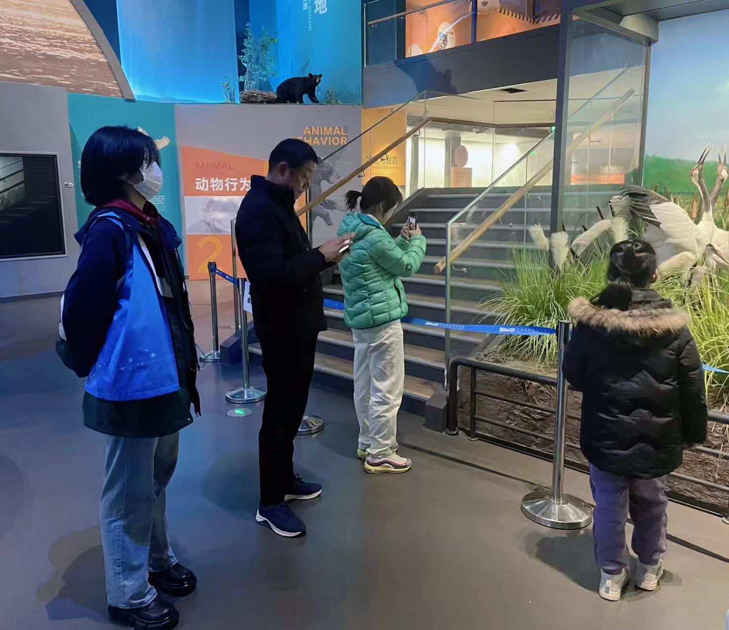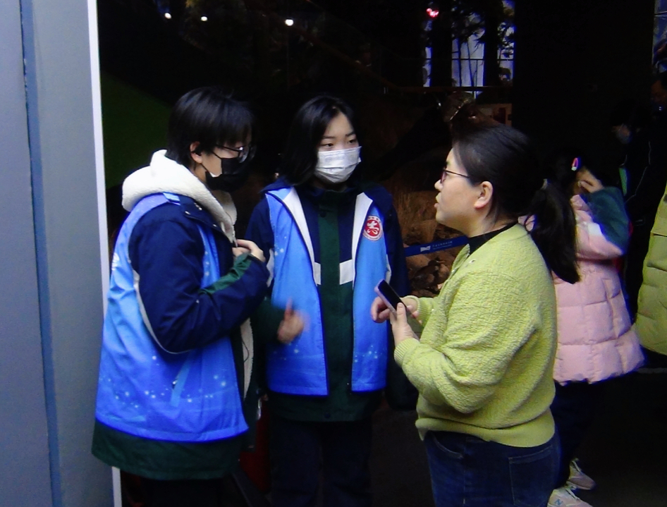 早上八点四十分,郑州市第一〇六高级中学志愿者们就已在馆内集合完毕,穿戴好整齐的蓝色志愿服,准备迎接为期半天的志愿服务。在分好各自负责的区域后,他们笑容灿烂地迎接着游客。从解答科技问题到指引游客参观,志愿者们忙碌而热情;他们巡逻在各个展区,保障游客的安全和秩序;时不时有游客遇到了困难,他们也积极地前去帮助。