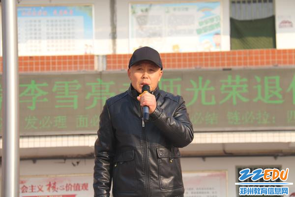 1月9日,郑州经开区九龙中学举办老教师光荣退休仪式,欢送该校李雪亮老师光荣退休。