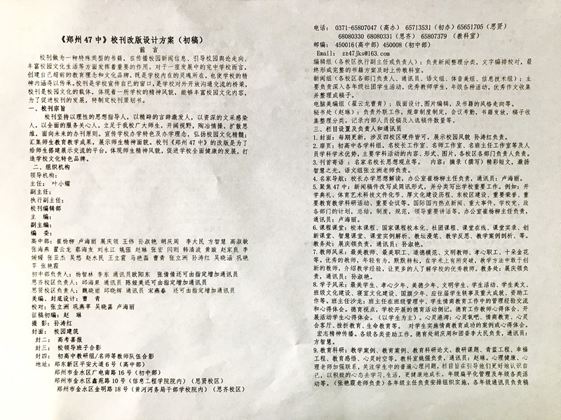 与会人员认真阅读《<郑州47中>校刊改版设计方案》