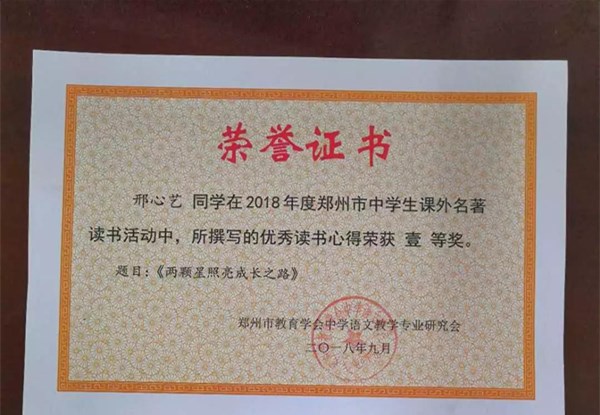 回顾一年来演讲社的各项活动,社团主要通过绕口令练习和主题教育活动来对社员进行吐字发音训练、形体训练、礼仪训练等,学习朗诵方法和技巧,培养学生的自信心、朗诵能力和语言表达能力。除了日常的演讲朗诵活动,社员们还积极参与2018年度郑州市中学生课外名著读书活动,其中有两名社员分别荣获优秀读书活动一等奖、二等奖。