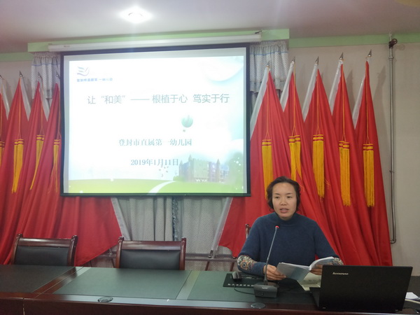 登封市直一幼园长席颖霞做了分享总结,并对该园的核心文化——和美文化座右铭做了第三次的分享理解,她强调要让“和美”根植于心,笃实于行。