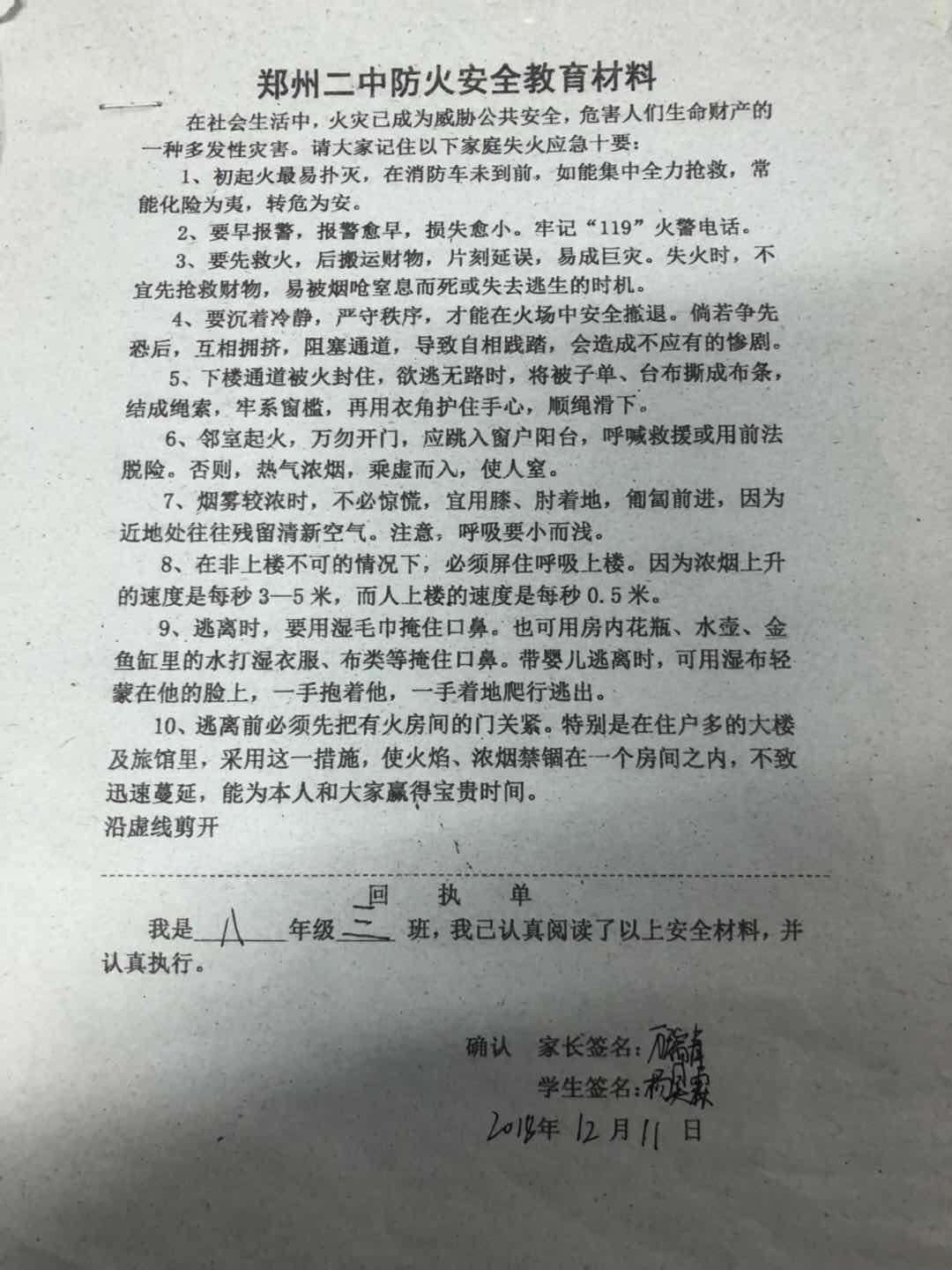 为了提高学生消防意识,增强对火灾扑救的组织能力和疏散能力,更好地了解防火措施,熟悉逃生路径,提高自救能力,1月24日下午,郑州二中初中部在学校教学楼和操场开展“以练为战 防患未然”消防疏散演练。参加人员主要包括师生、宿舍管理员、各部门老师、门卫负责人。