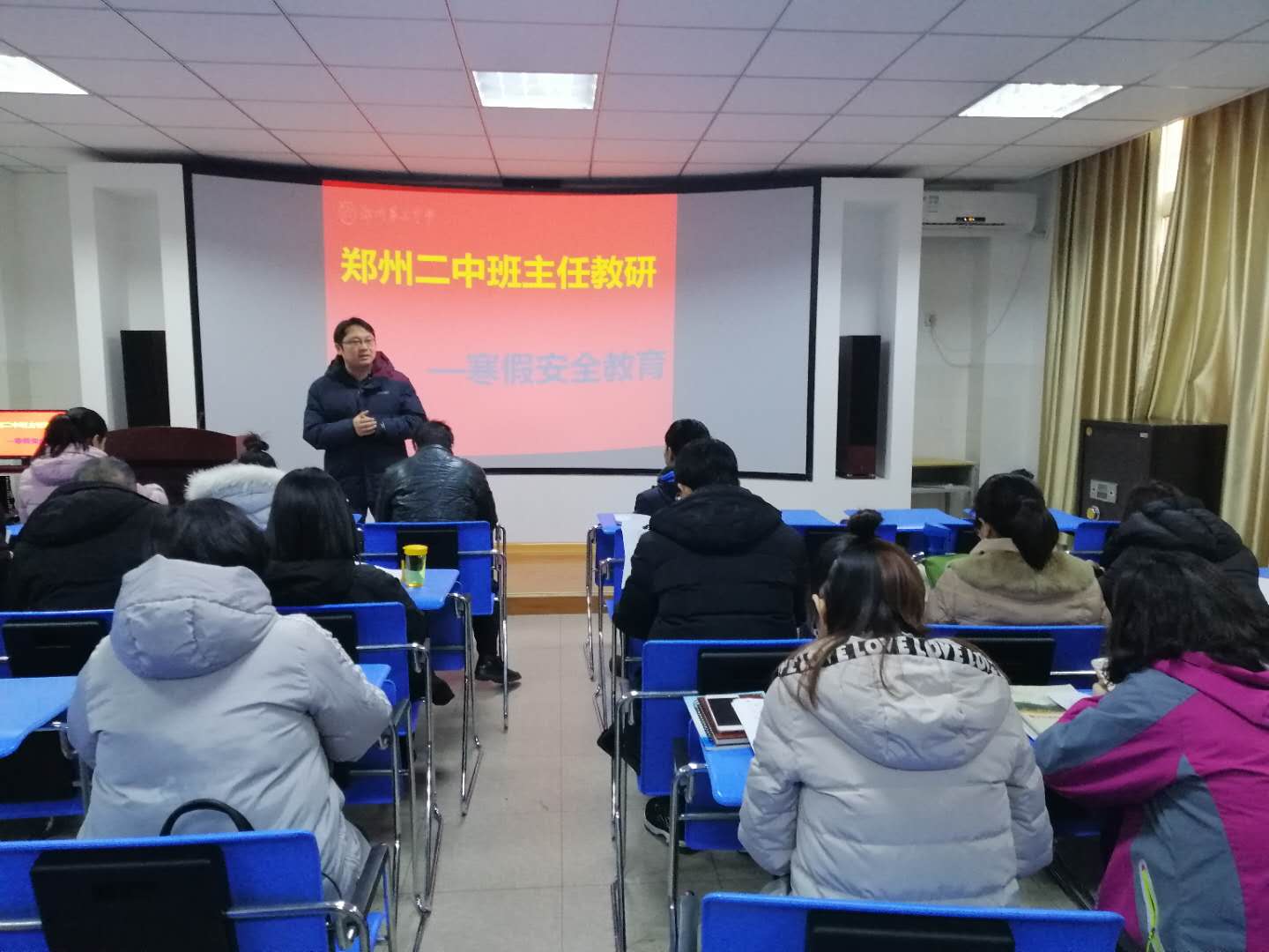 疏散前,郑州二中初中部管委会主任、副校长姜波为班主任作消防安全教育培训。