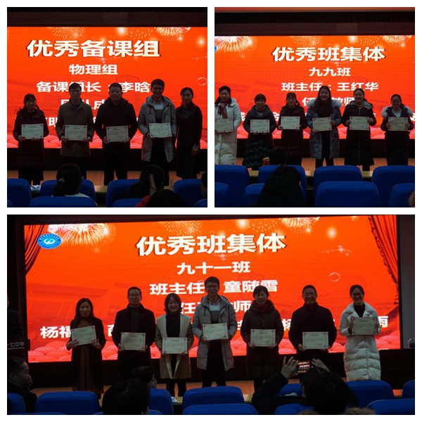 首先,教务处副主任李广锐对九年级一测成绩进行详细分析。他从大数据入手,先对年级层面的班级、学科进行质量总体分析,接着结合段考二数据与本次考试成绩进行横向、纵向对比,寻找各班各学科的成绩变化和差距。李广锐充分肯定了全体教师工作勤勉努力,并提出下阶段的改进措施,要求“夯实基础,增强意识;明确目标,落实任务。”接着进入颁奖环节,出席本次会议的领导为他们颁奖,在此过程中,不断响起阵阵掌声。