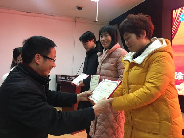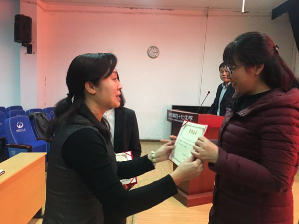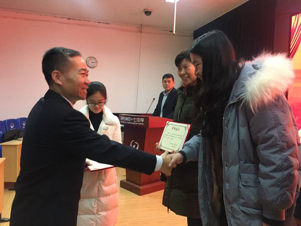 郑州47中初中部执行校长肖国红为获奖教师颁奖