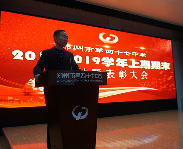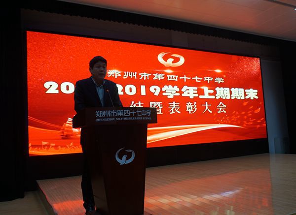 心中有梦想,脚下有力量。1月26日上午,郑州47中在慎思楼四楼会议室召开“2018-2019学年”上期七、八年级教学工作总结暨表彰会。会议由教务处副主任李冬主持,郑州47中程雷副校长、杨智林督学和七、八年级任课教师全员参会。