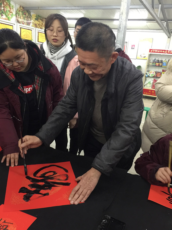 校长王玉保挥毫泼墨,大显身手,用不同的笔体书写“春”“寿”“龙”和五“福”,或圆润喜庆,或刚健厚重,或清新秀雅,让人赞不绝口,笔触红纸的温暖,漂亮的书法配上喜庆的祝福,表达着别样的情怀。