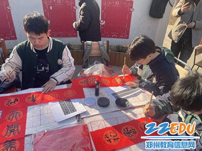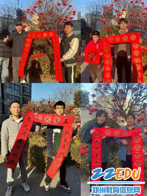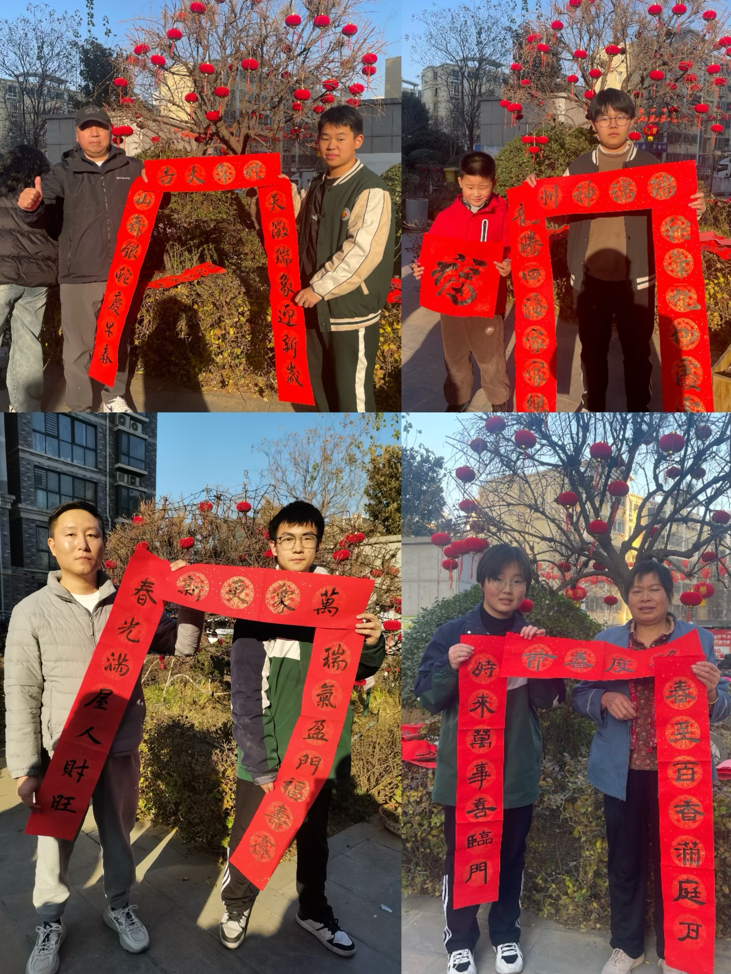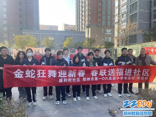 随着2025蛇年春节的脚步渐近,1月19日下午,郑州市第一〇六高级中学书法社和青年志愿者社团共10名志愿者,在德育处指导老师程宝强和郭雨健的带领下,开展了一场以“金蛇狂舞迎新春,春联送福进社区”为主题的志愿活动,为社区居民带来浓厚的节日氛围。