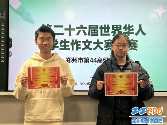 据悉,该赛事是教育部公示认可的白名单赛事之一,旨在提高华人学生中文写作水平,坚定文化自觉自信,传承中华文化基因,展现中华审美风范。为确保赛事顺利开展,学校牵头成立专项工作小组,制定系统组织方案。通过语文教研组广泛宣传动员,全校师生积极响应,初赛共征集稿件2325篇,实现各年级全覆盖。经严格评审,共评选出一等奖233篇、二等奖348篇、三等奖465篇,充分体现了郑州市第四十四高级中学深厚的文学底蕴与扎实的教学成效。