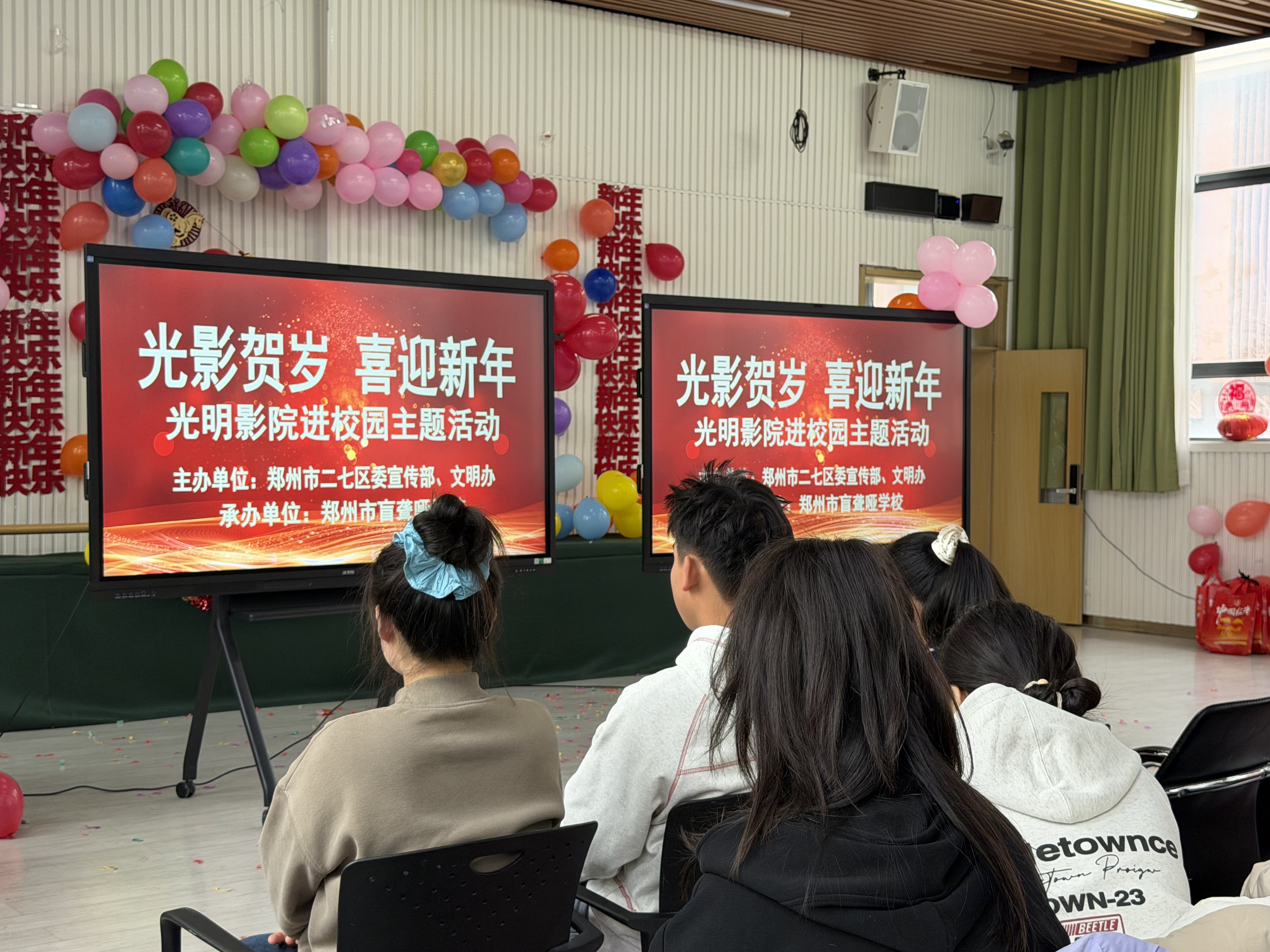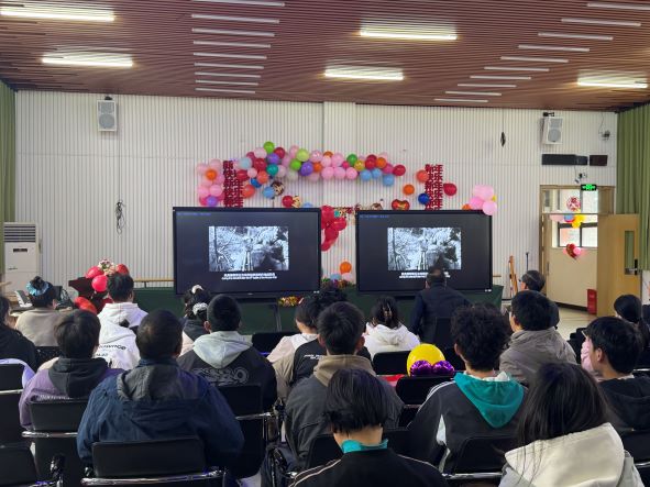 辞旧迎新之际,为让留校学生不再孤单,度过一个温暖充实的元旦假期,郑州市盲聋哑学校联合二七区文明办“光明影院”公益项目,于2025年12月31日至2026年1月2日下午,在二楼会议室开展为期三天的无障碍电影观影活动。