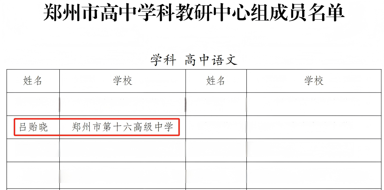 近日,郑州市第十六高级中学从郑州市教育局公布的新一届基础教育学科教研中心组成员名单中获悉,学校吕贻晓(语文)、侯英杰(数学)、宗永兴(物理)、朱春卉(化学)、史歌(生物)、赵小利(思想政治)、刘涛(地理)、李翔(体育)8名教师成功入选。以上教师均为学校学科带头人,多人拥有省市级名师、骨干教师称号,并在优质课竞赛中屡获佳绩。他们在课程开发、教学创新、竞赛辅导等方面成果显著,充分体现了学校教师队伍的专业素养与教学实力。