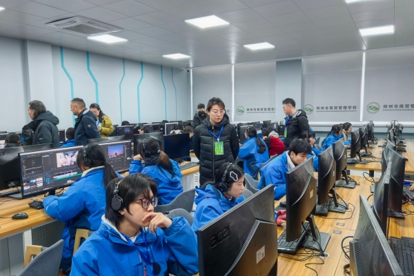 为检验专业教学成效,提升学生短视频制作实战能力,2026年1月6日,郑州市商贸管理学校动漫与游戏制作专业短视频制作专业技能考核举行,郑州市教育科学规划与评估中心职业教育教学研究室副主任李洋、教研员徐二森,郑州市中职学校艺术设计类中心组组长孟建军、副组长王远,郑州市中职学校新闻传播类中心组组长周乐生、副组长杨郑鹏、李智龙莅临考核现场。24级动漫与游戏制作专业全体学生以镜头为语言、以技术为双翼,在光影流转中展现扎实专业素养,彰显学校文创系职业教育育人成果。