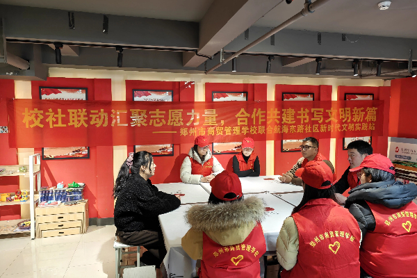 2026年1月7日下午,郑州市商贸管理学校政教处主任李蒙、团委副书记李拢拢带领由学校青年党员、团员组成的志愿者队伍,深入航海东路社区,以“校社联动汇聚志愿力量,合作共建书写文明新篇”为主题,与航海东路社区新时代文明实践站联合开展了一场富有意义的学雷锋志愿服务活动。