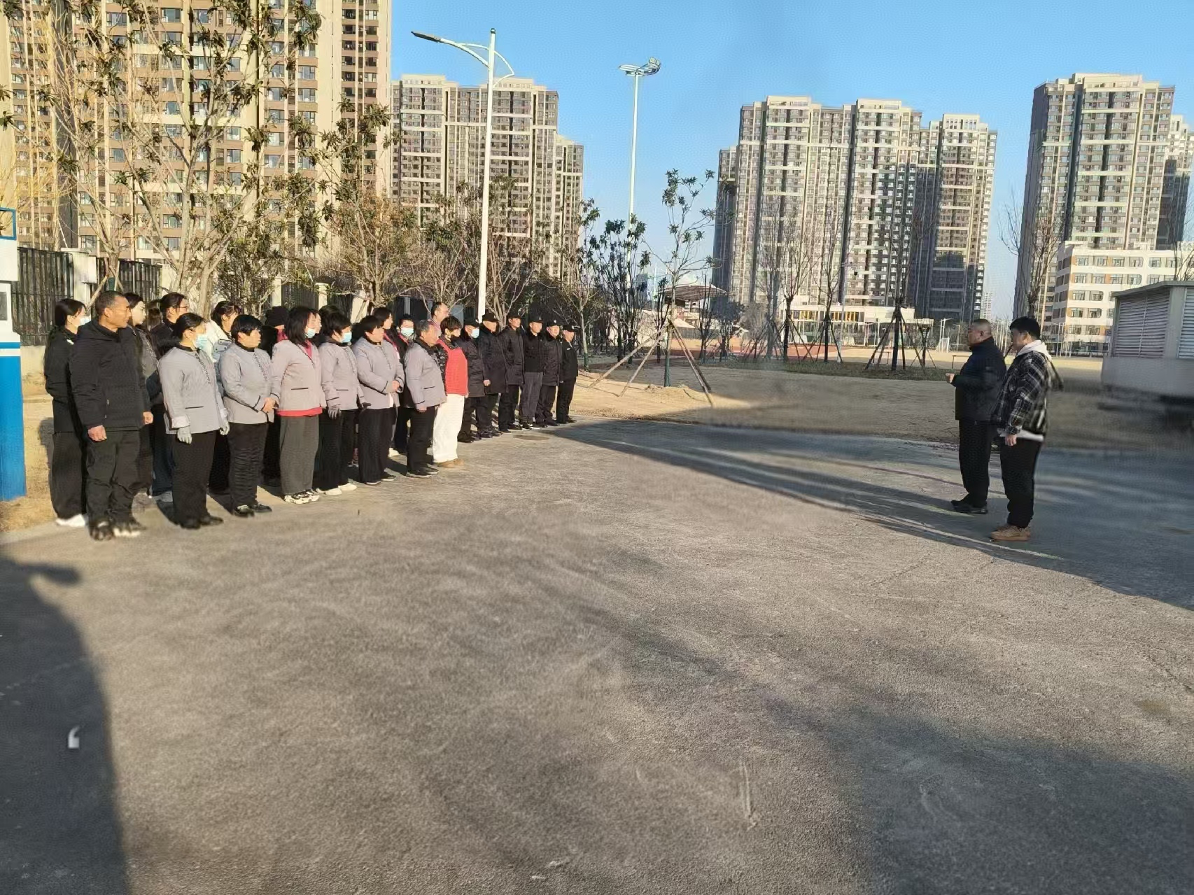 演练开始前,首先由高罡恒老师和杜林涛老师为全体参演人员进行了简洁而系统的消防安全知识培训。培训紧密结合校园实际,重点讲解了日常工作中常见的火灾隐患、初期火灾的识别与扑救原则、不同种类灭火器材(干粉灭火器、水基灭火器、消防栓)的正确使用方法、火场疏散逃生要领以及报警求助的规范流程。通过真实案例剖析,使“三保”人员深刻认识到消防安全无小事,岗位责任重于泰山。