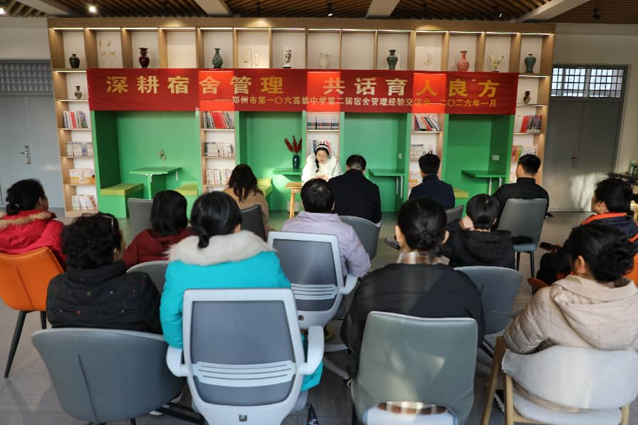 1月8日下午,郑州市第一〇六高级中学第二届宿舍管理经验交流会举行。本次会议由团委副书记刘慧依主持,校长胡庆周、副校长张宏、德育处主任李宪伟、德育处副主任常新辉、刘明杰老师及全体宿舍管理员参会,共同探讨宿舍管理的实践路径与育人智慧。