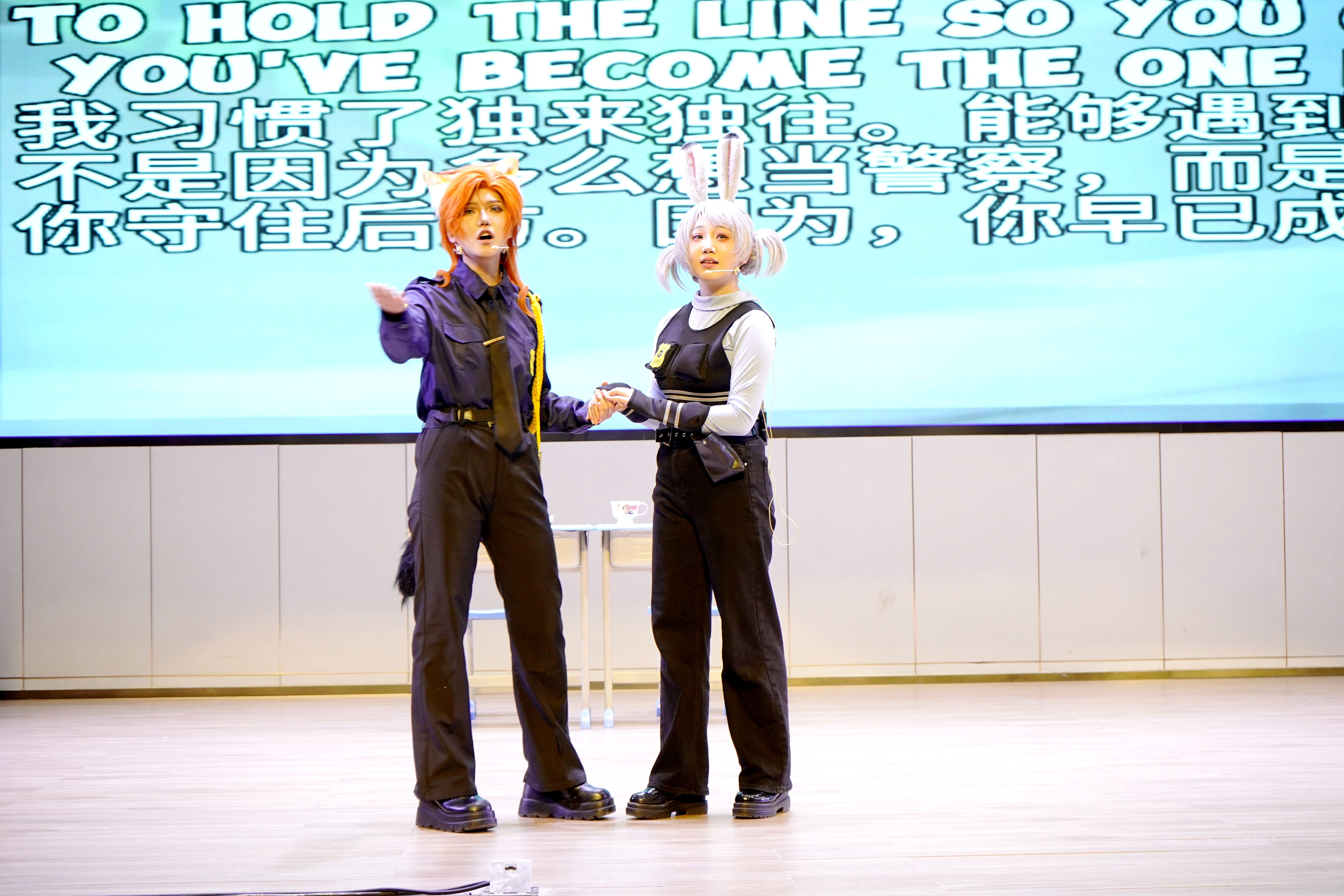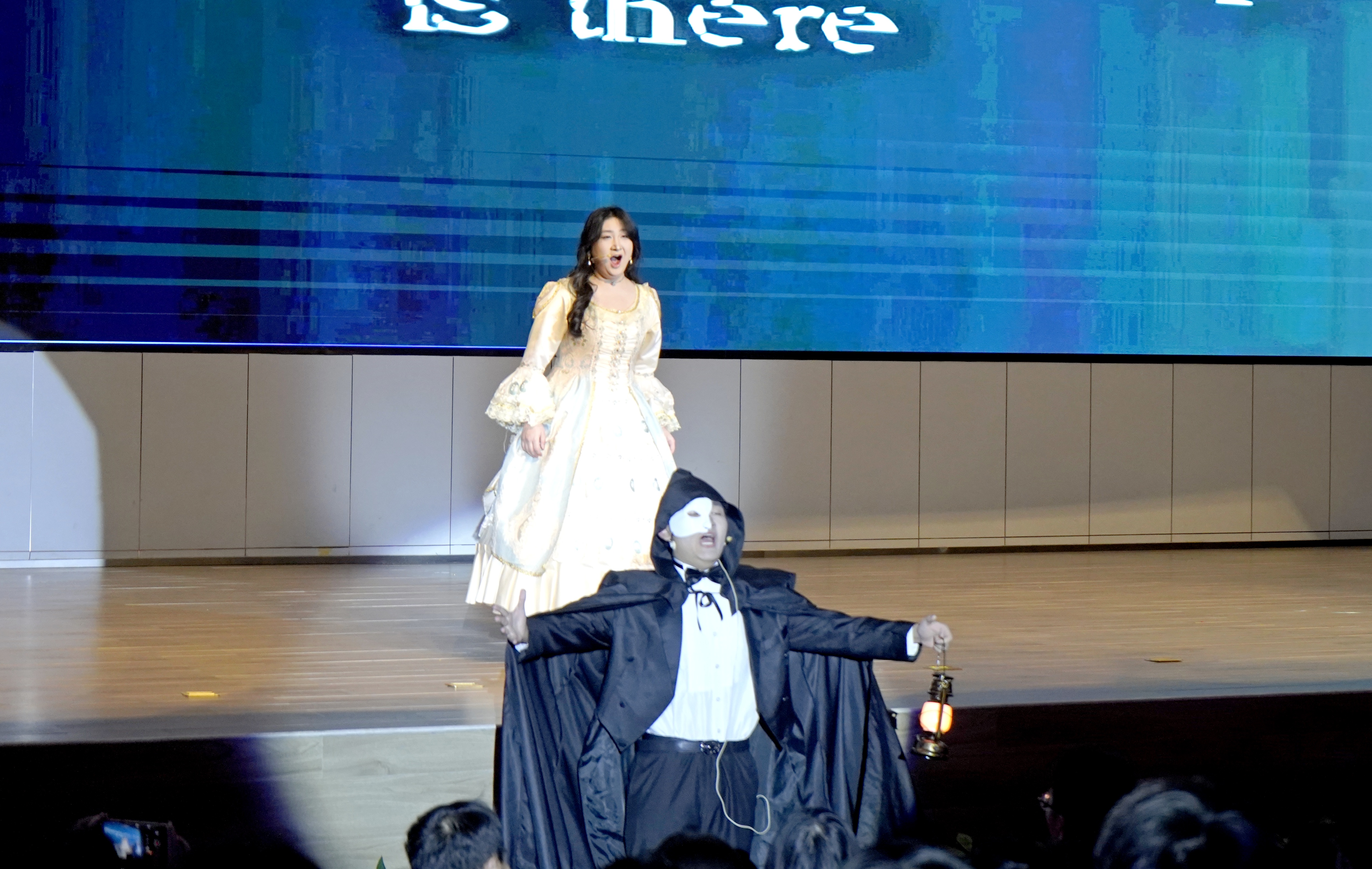 青春的舞台,因多元表达而璀璨。本次文化节展演形式丰富多元,歌曲、短剧、歌剧等多种艺术形式轮番登场,全方位展现出该校学子扎实的英语语言功底与昂扬向上的精神风貌。高一(12)班师生合唱的励志曲目,以动人旋律与真挚情感点燃全场热情,让青春的朝气在歌声中传递;英语短剧板块更是创意迭出,高一(1)班用幽默诙谐的演绎重构《滥竽充数》,在欢声笑语中传递“真才实学方为立身之本”的深刻道理,实现了传统文化与语言学习的巧妙融合;而高一、高二学生合作演绎的《歌剧魅影》经典选段,凭借优美声线与真挚情感,将整场活动的氛围推向顶峰,展现了学子们多元的艺术素养与跨文化理解能力。