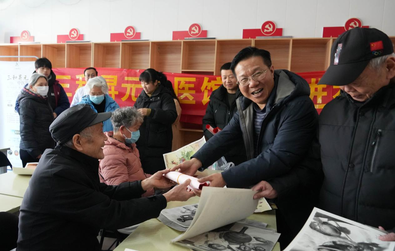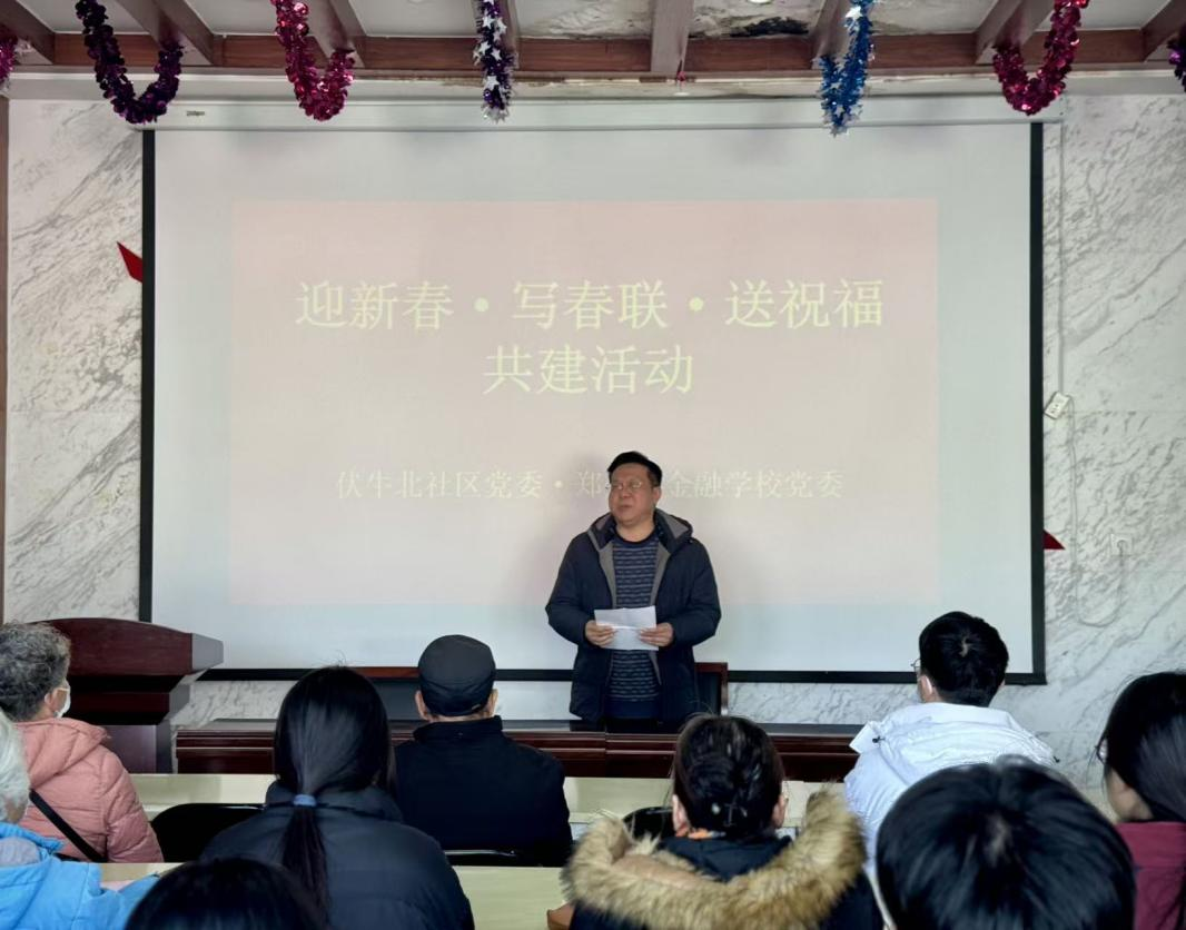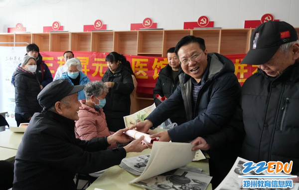 郑州市金融学校副校长马俊武为社区老人送上对联