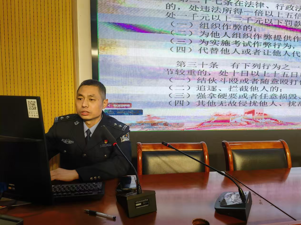 讲座采用“线下主会场+线上直播”相结合的模式进行,主会场设于学校三楼大会议室,同时通过钉钉平台向全校师生实时直播。郭文瑞警官结合现实案例,深入浅出地解读了新修订的《中华人民共和国治安管理处罚法》的立法背景、主要修订内容、核心要义及对社会生活、校园管理的实际影响,帮助师生准确把握法律新规,明确行为边界,增强了法治教育的权威性和实效性。