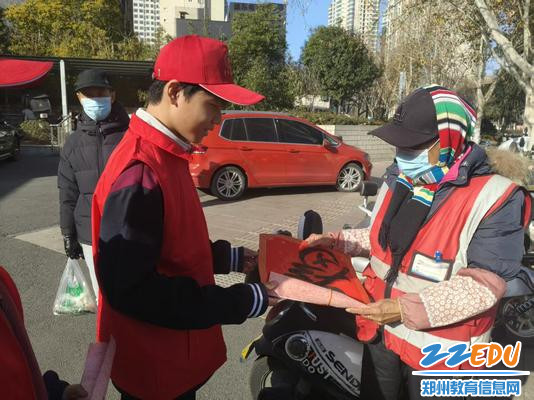 活动中,志愿者们还主动与社区居民交流,普及文明环保知识,倡导大家共同维护社区环境,同时向居民们传递移风易俗理念,让文明新风融入日常。此次活动不仅为伏牛北社区居民送去了满载心意的新春祝福,改善了社区人居环境,更以实际行动传承了中华优秀传统文化,展现了郑州市金融学校学子的责任担当与青春风采。