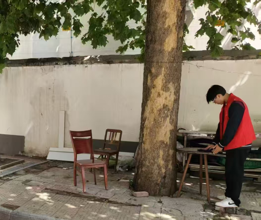 在送福之余,志愿服务队兵分两路,同步开展社区环境卫生整治行动。志愿者们身着红马甲,手持扫帚、抹布、垃圾袋等工具,分工明确、协同作战,对社区公共道路、绿化带、卫生死角及健身器材等区域进行全面清扫。大家不怕脏、不怕累,仔细捡拾落叶、纸屑、烟头,认真擦拭公共设施,耐心清除墙面小广告,不放过任何一处卫生盲区。忙碌的身影穿梭在社区各个角落,成为冬日里一道亮丽的风景线。经过数小时的奋战,社区环境面貌焕然一新,整洁的道路、干净的设施让居民们的居住体验得到显著提升。