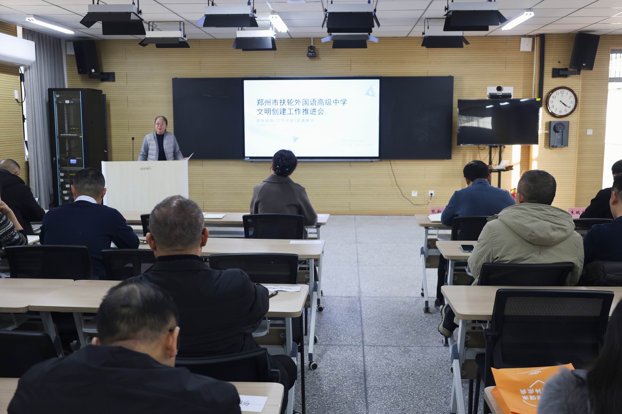 为全面推进文明校园创建工作,明确创建目标,细化工作任务,凝聚全校师生合力,1月15日,郑州市扶轮外国语高级中学召开文明校园创建工作动员会。会议由副校长孟慧娟主持,全体教职工参会。
