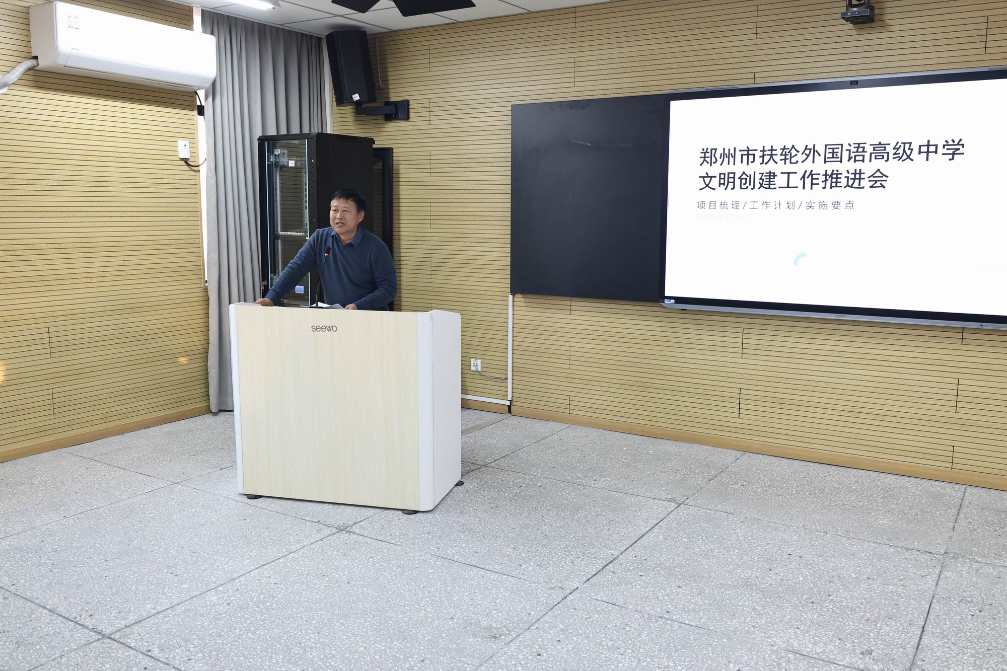 会议最后,郑州市扶轮外国语高级中学党总支书记张新慧作总结讲话。他对文明校园创建工作提出明确要求,强调创建工作事关学校发展全局,全体教职工要深刻认识创建工作的重要意义,将创建任务与日常教育教学工作深度融合;以文明校园创建工作为契机,全面提升学校管理水平、育人质量和校园形象,努力打造让师生满意、家长放心、社会认可的文明校园。