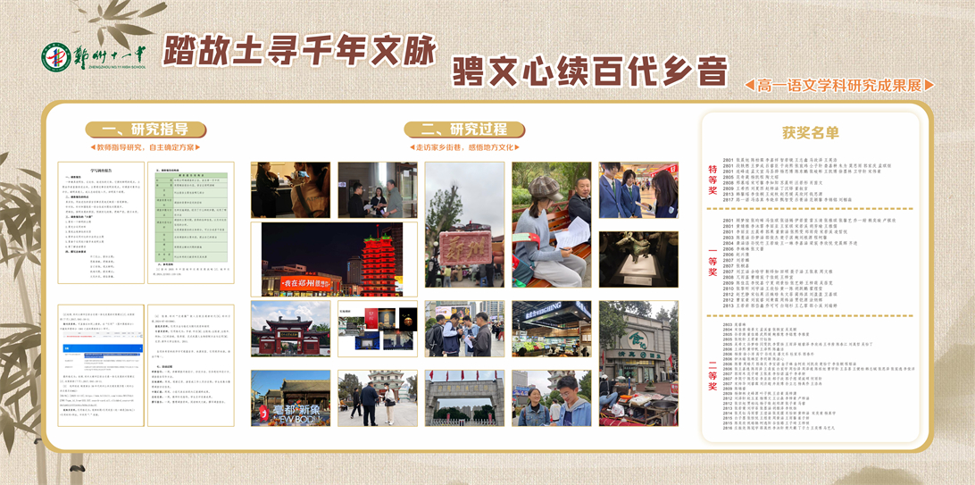 1月27日,郑州市第十一中学语文学科“家乡文化生活”研究活动圆满落下帷幕。为落实高中语文学科核心素养培育要求,让语文学习走出课本、扎根生活,郑州市第十一中学语文组以“踏故土寻千年文脉,骋文心续百代乡音”为主题,构建“前期指导—实地调查—中期汇报—成果展示”的活动流程,通过人文感知与实证探究的有机融合,让学子在探寻家乡文化的旅程中锤炼思维、精进表达,厚植家国情怀。